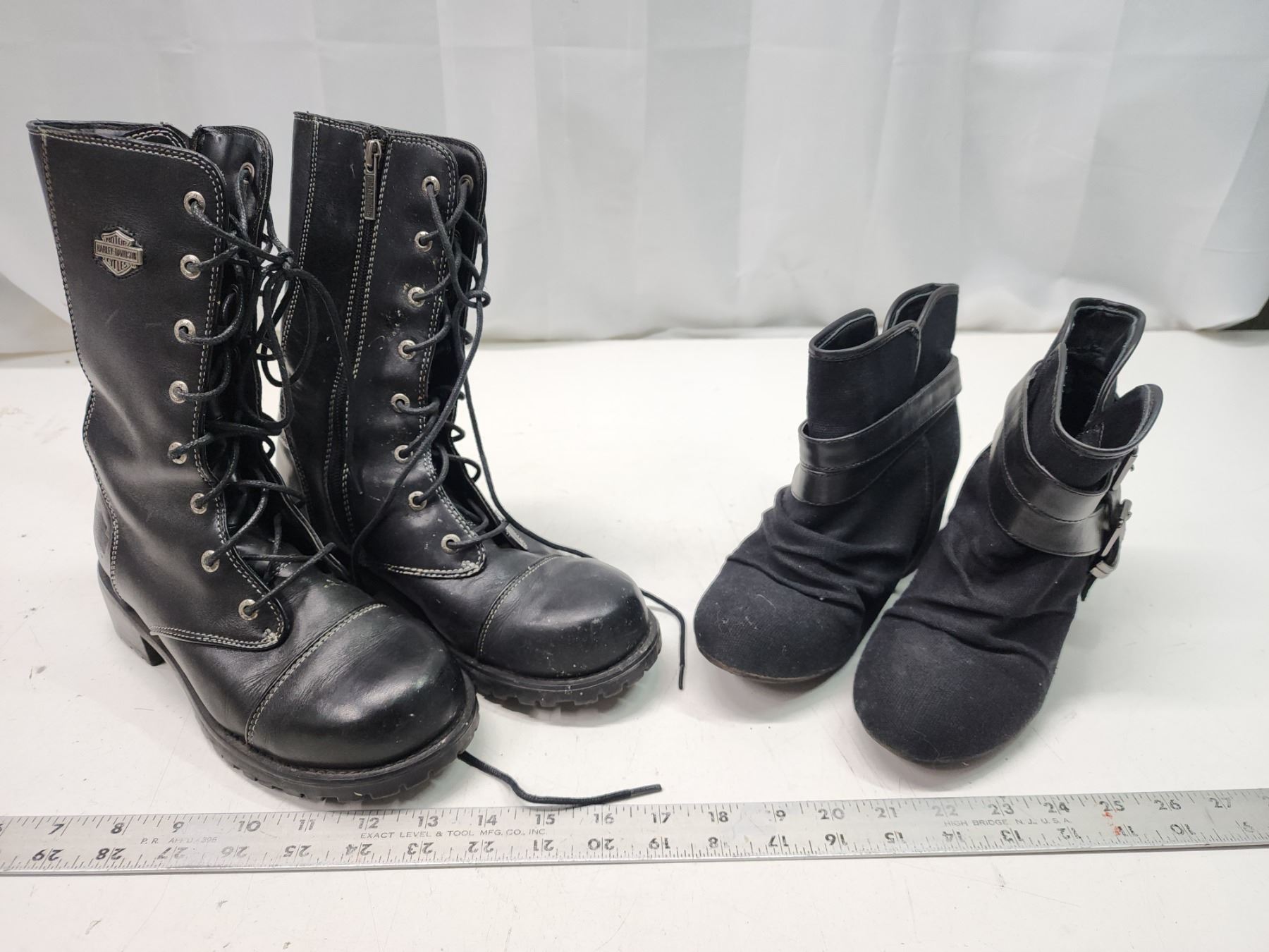 2 Pairs of ladies dress boots - Harley Davidson boots size 6.5 & other is size 7