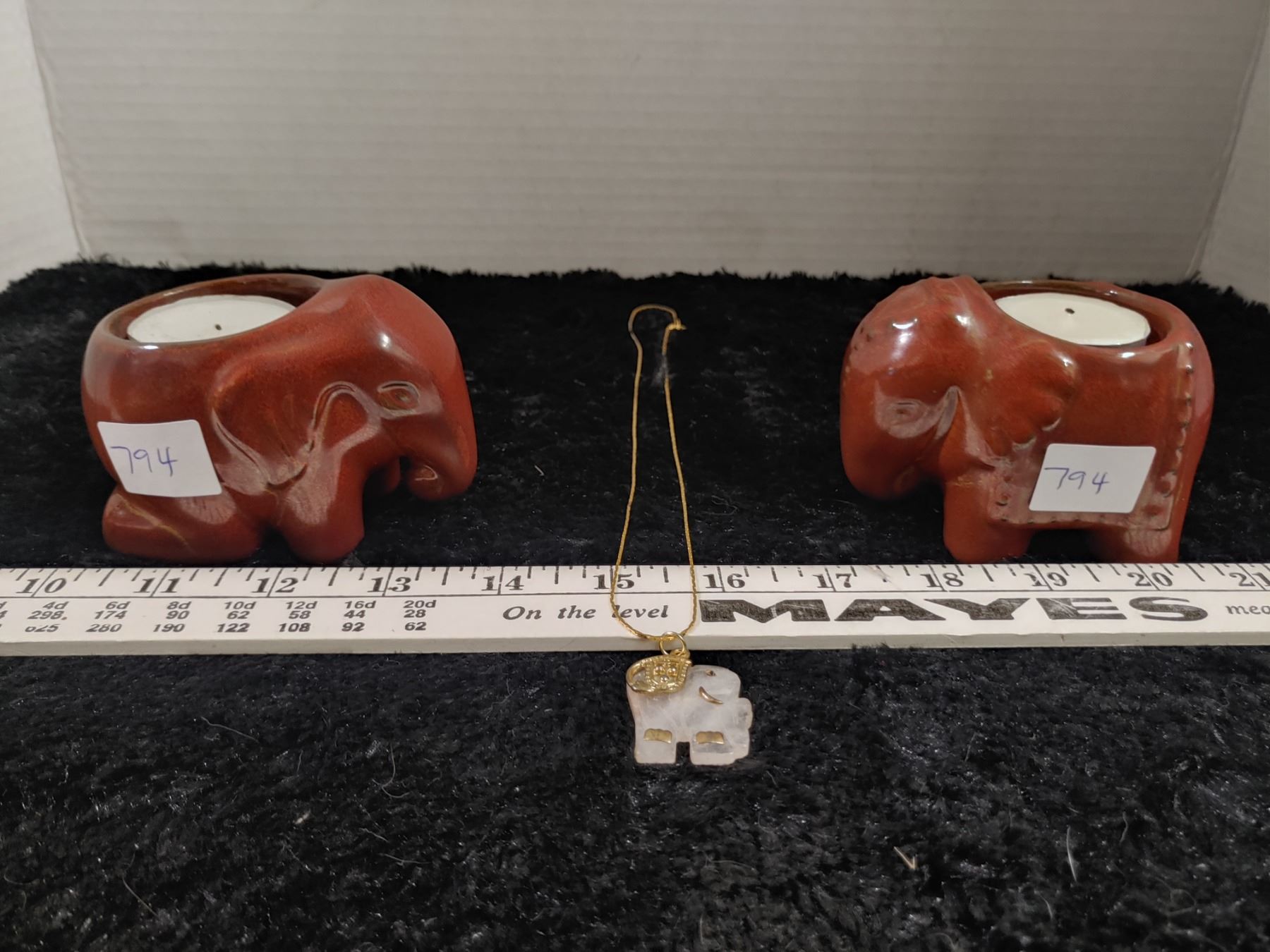 2 Partylite Elephant Candle Holders + 1 Rose Quartz Elephant Necklace