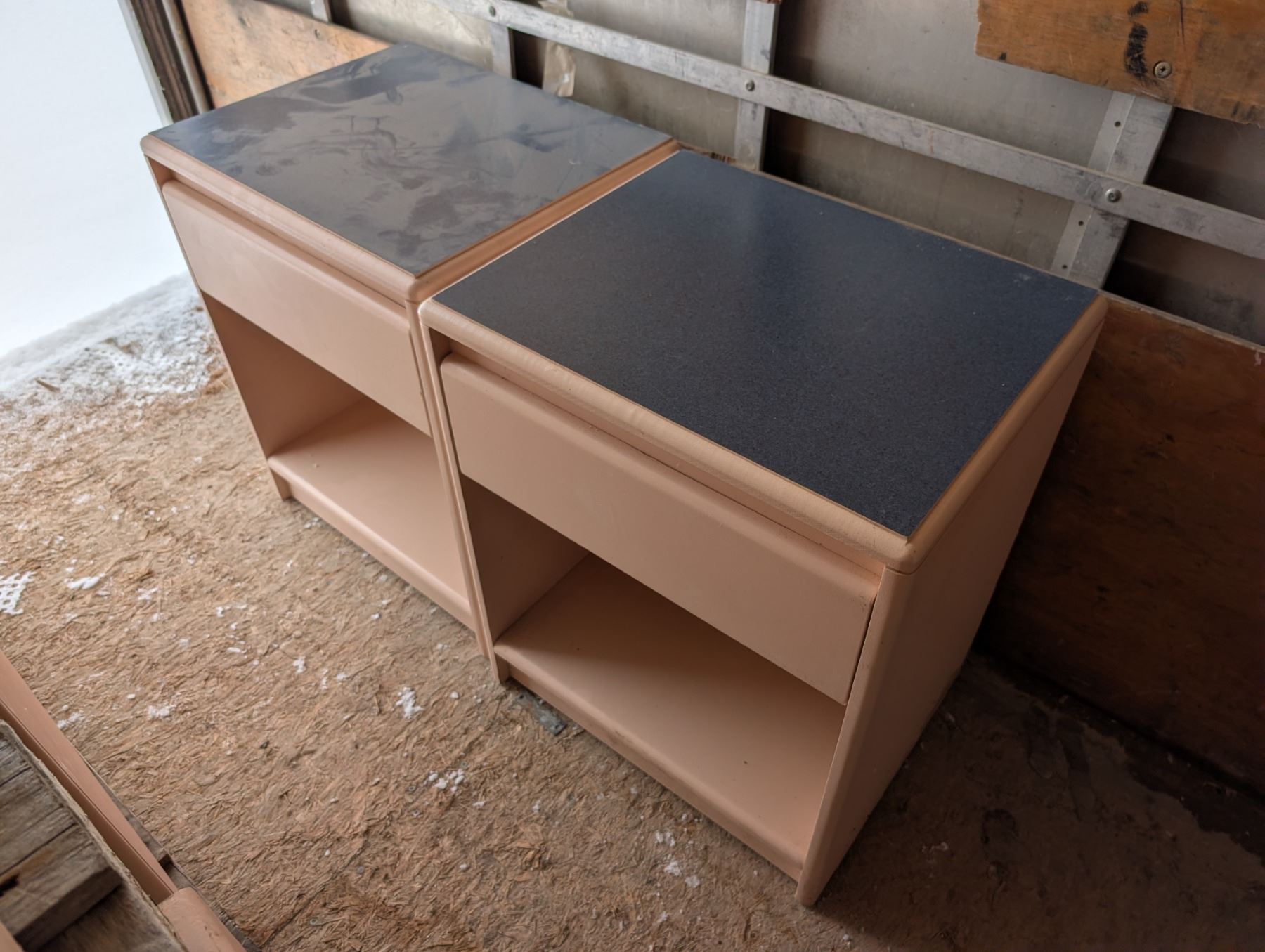 (2) Pink Wood Night Stands w/ Pull out Drawer 16"x19"x24"