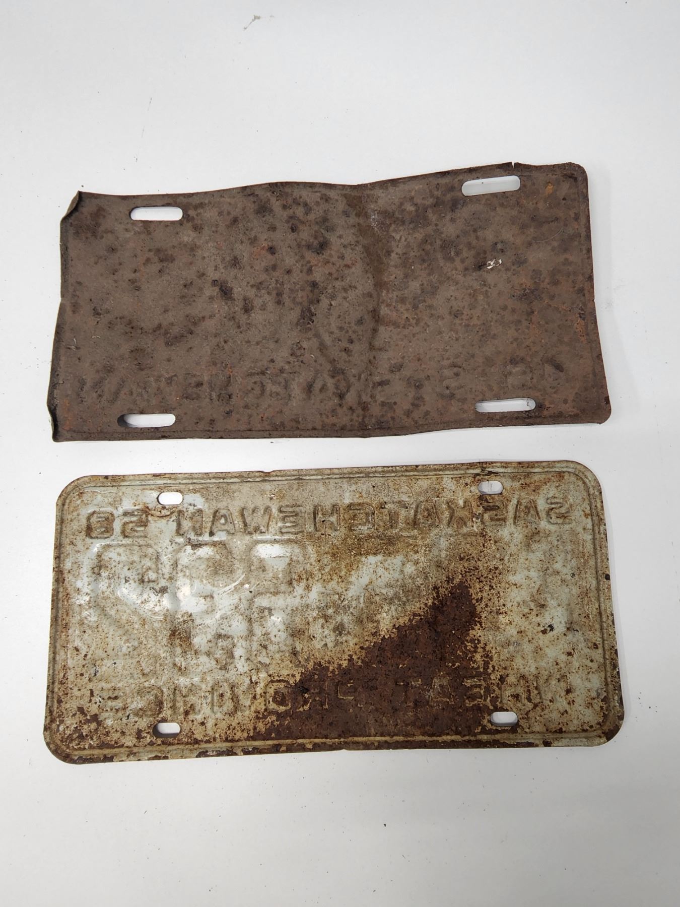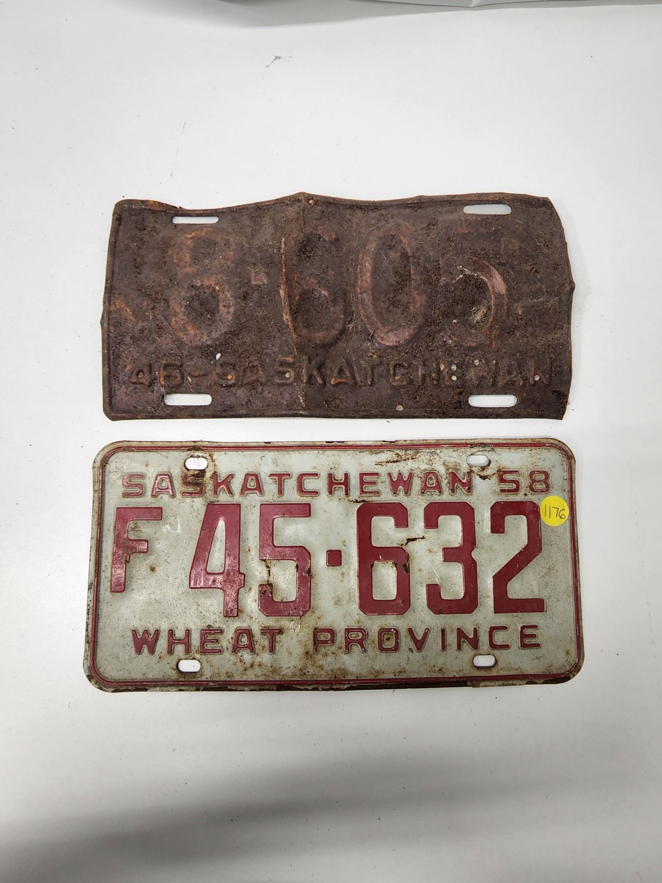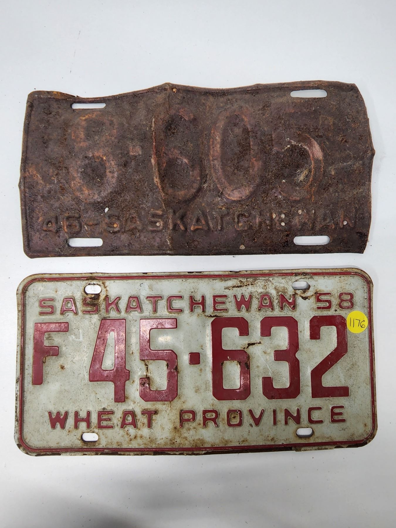 (2)Plates: 8 605 46-Sask, F45-632 58-Sask