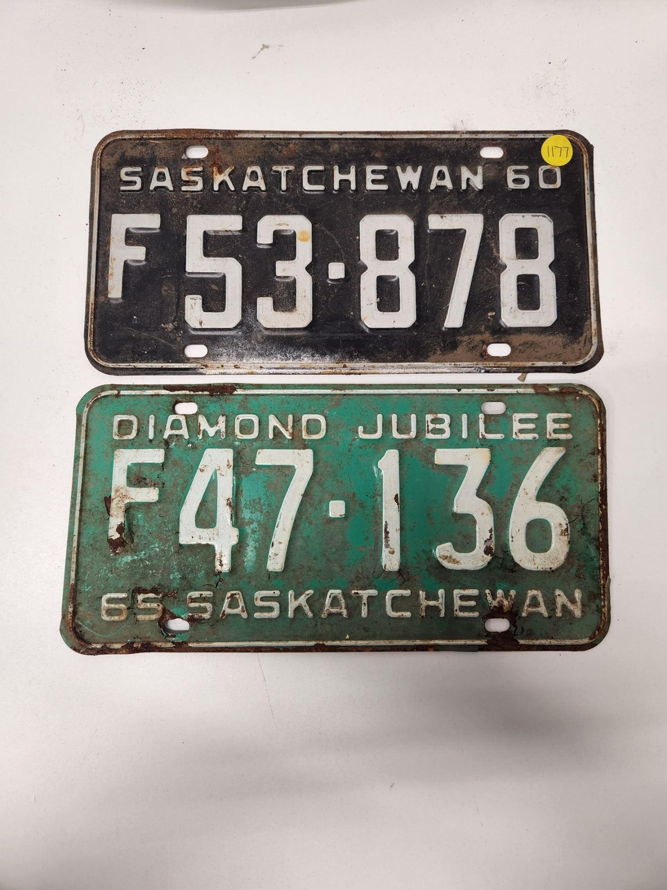 (2)Plates: F53-878 60-Sask, Diamond Jubilee F47-136 65-Sask