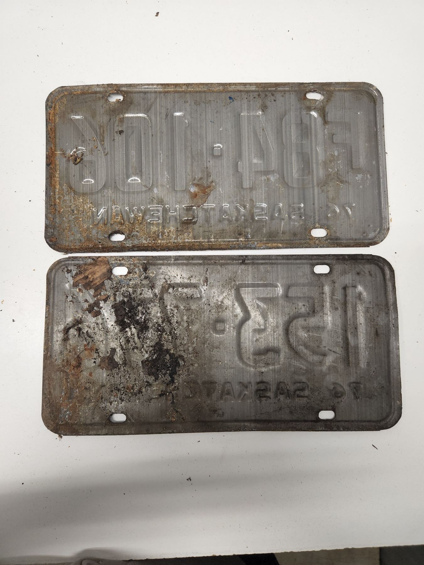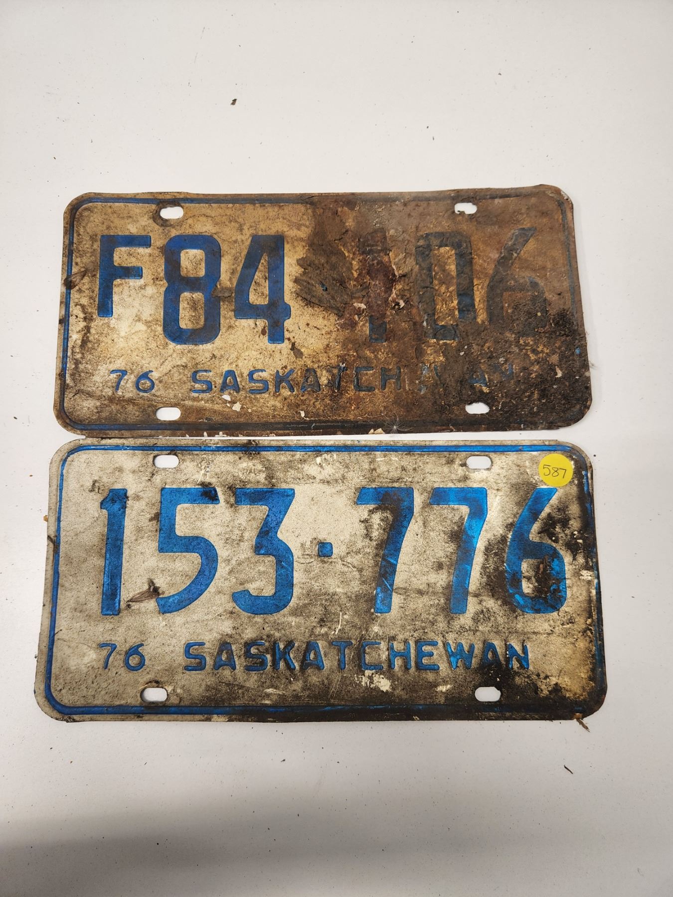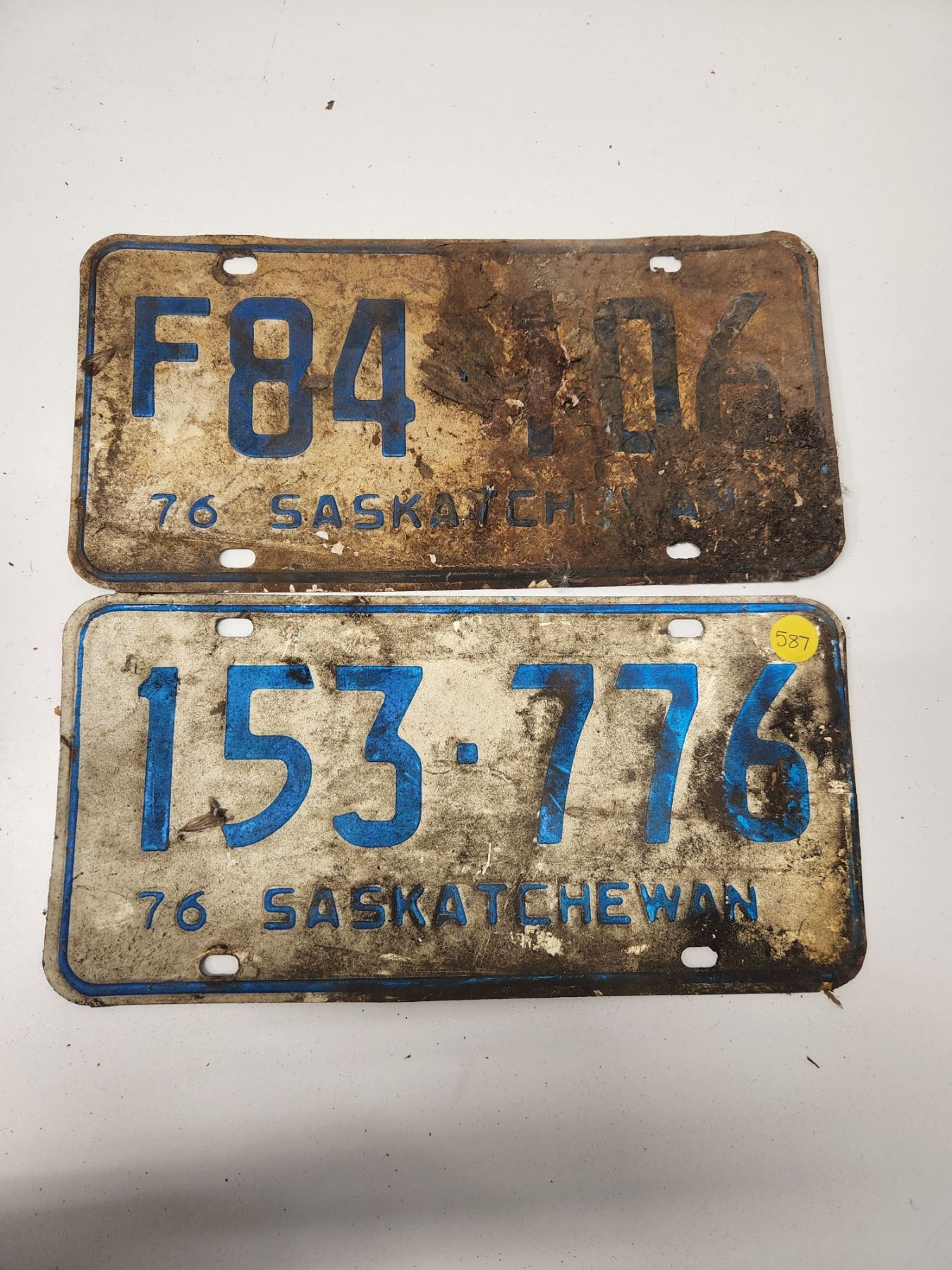 (2) Plates: F84-106 76-Sask, 153-776 76-Sask