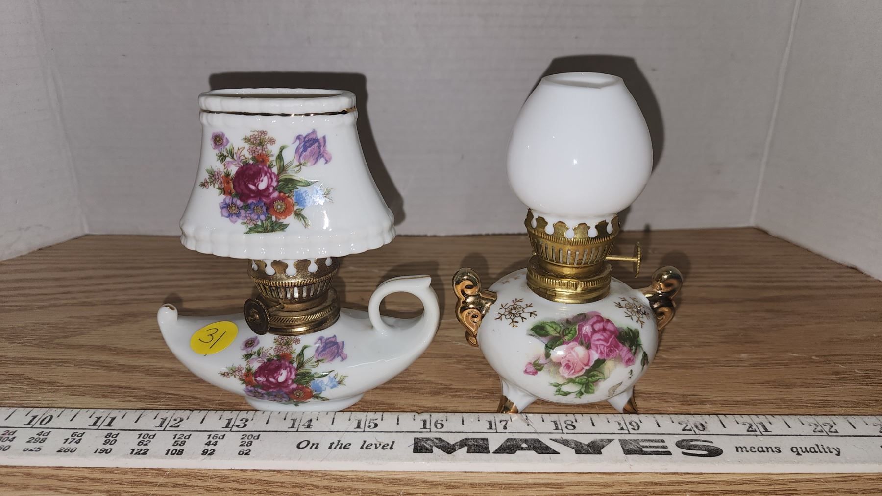 2 Porcelain Lamps - 1 Hurricane - 1 Aladdin 1960's Vintage