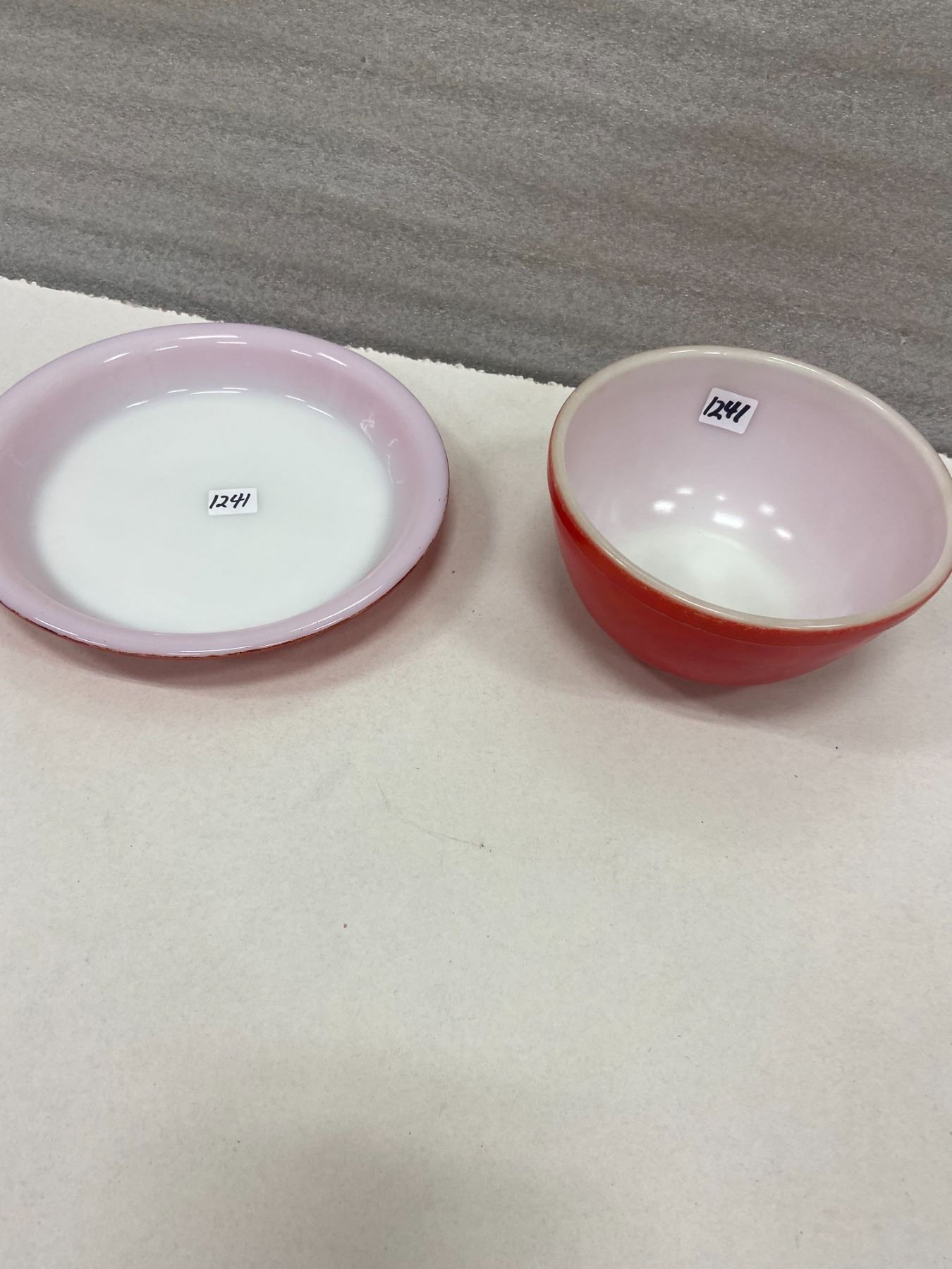 2 Pyrex pieces, pie plate 9.5" & bowl 7"