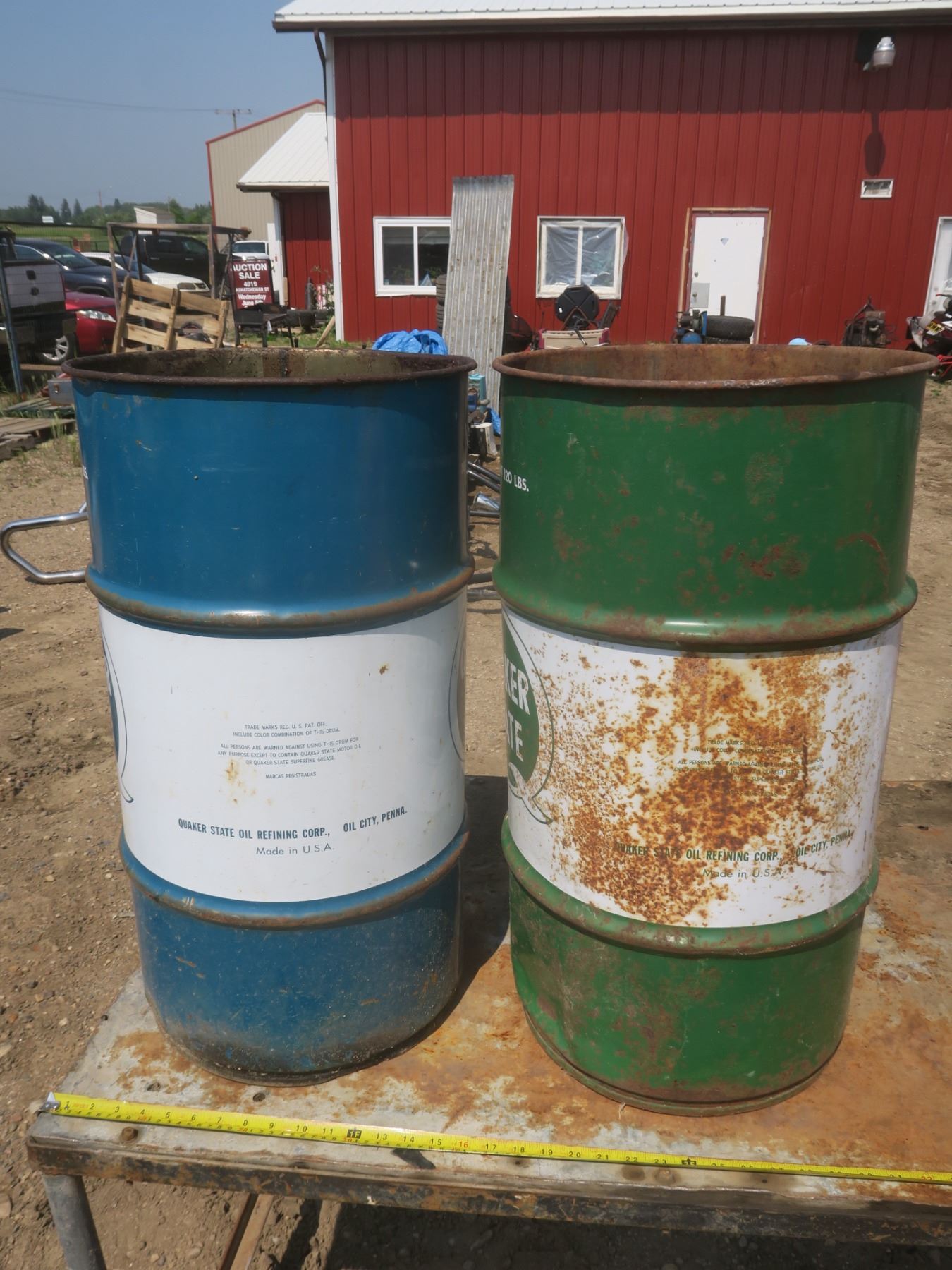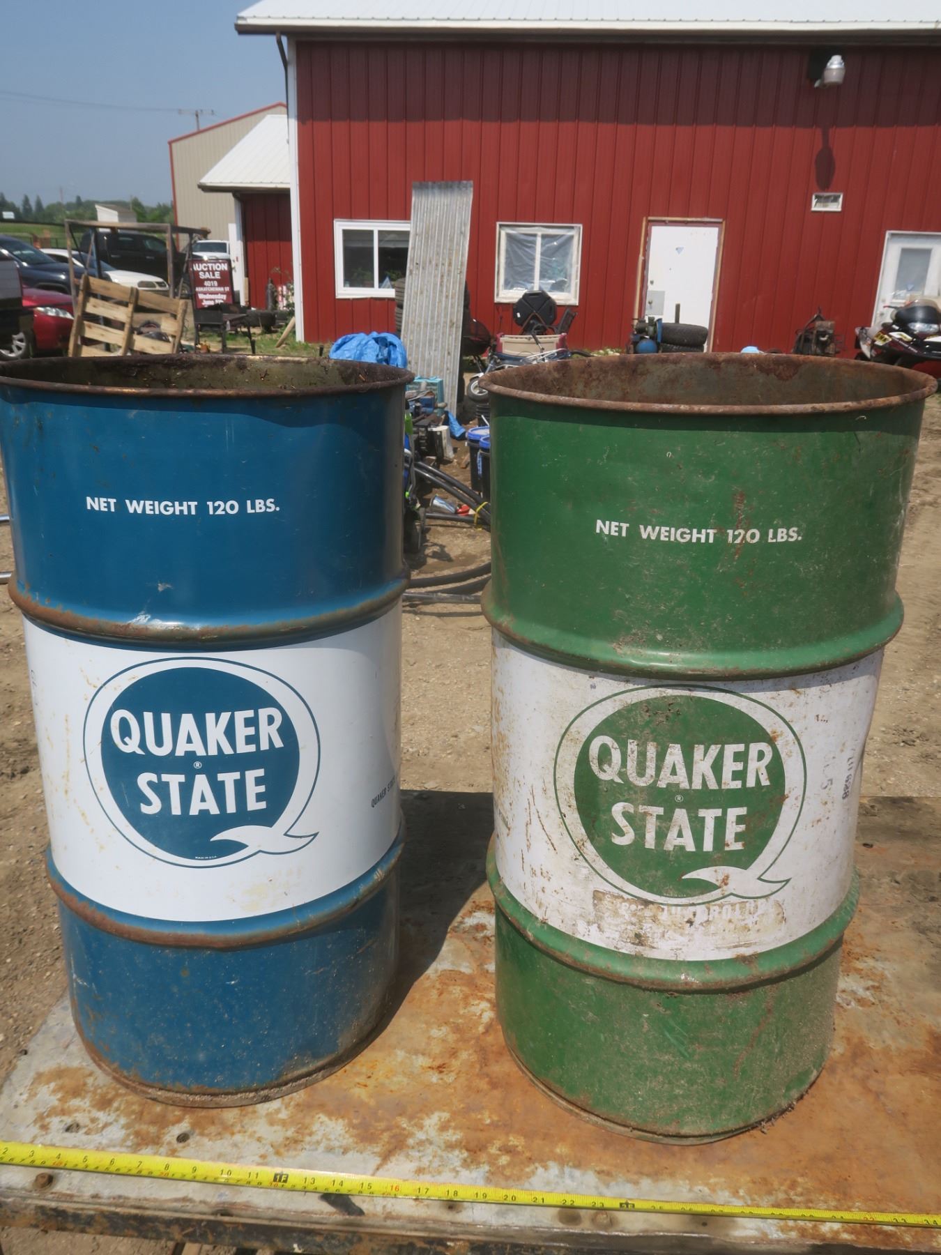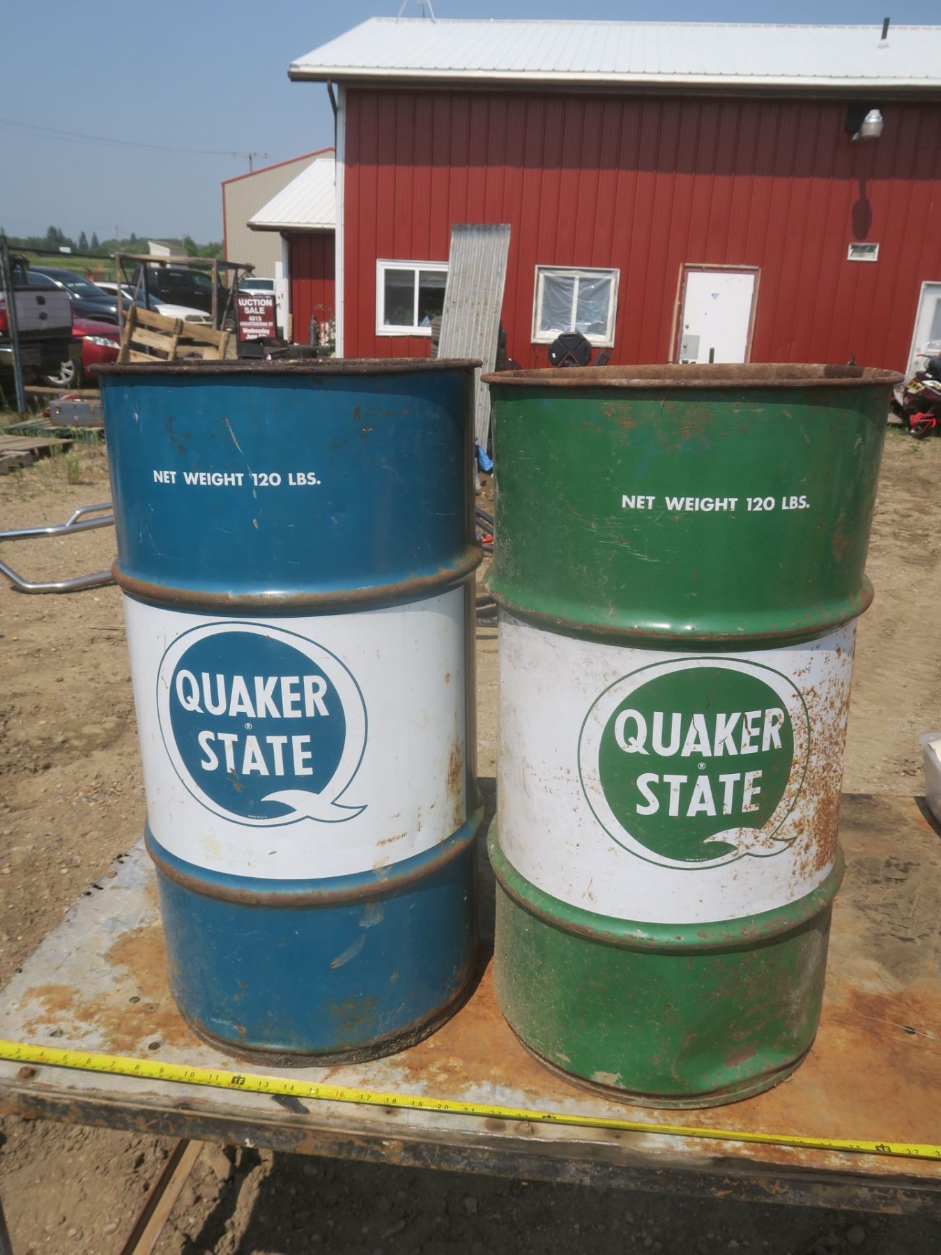 2 Quaker State 120lb oil cans