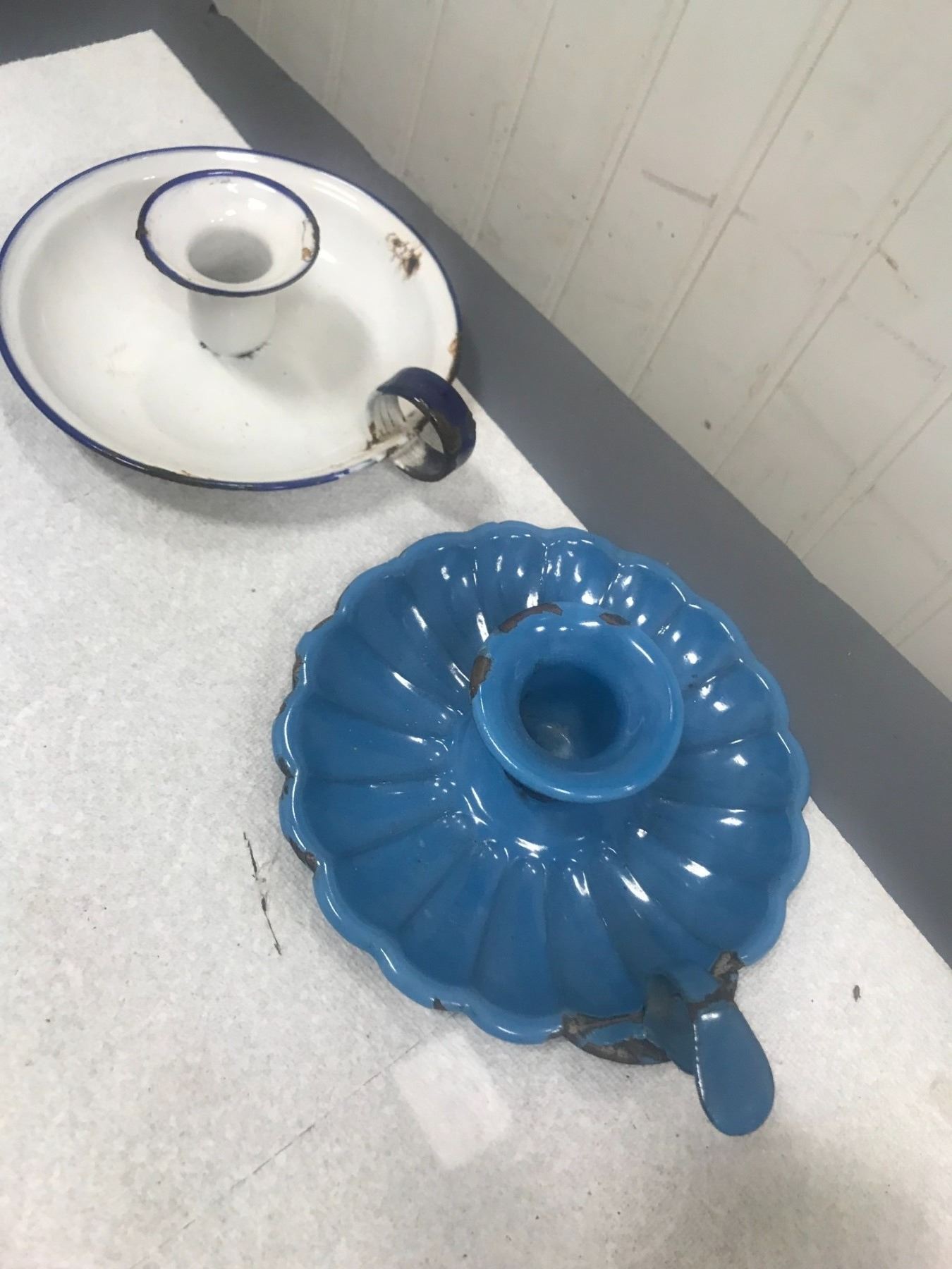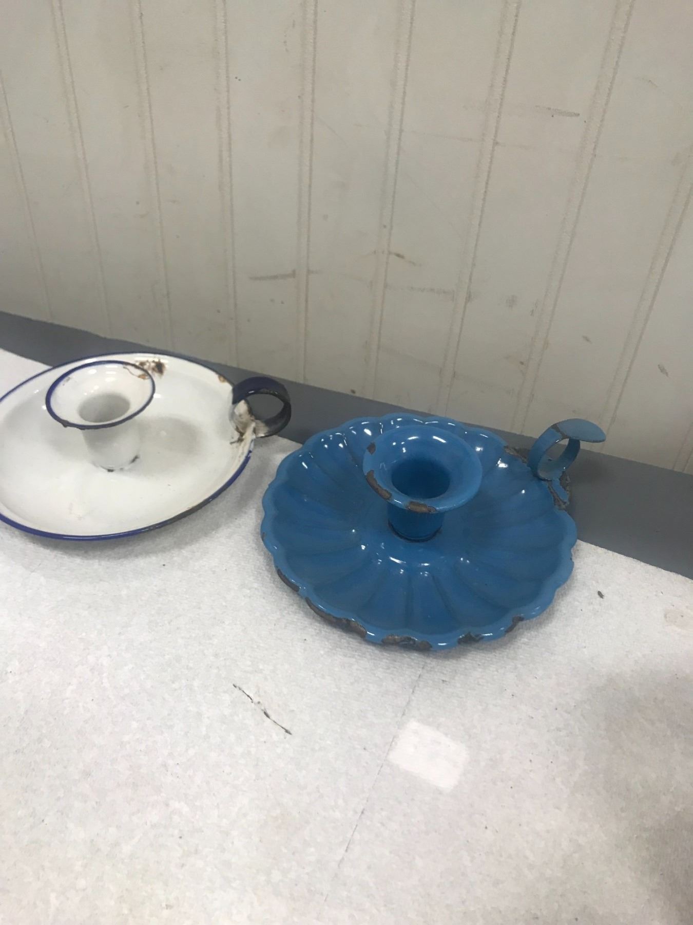 2- RARE Enamelware Candle Holders