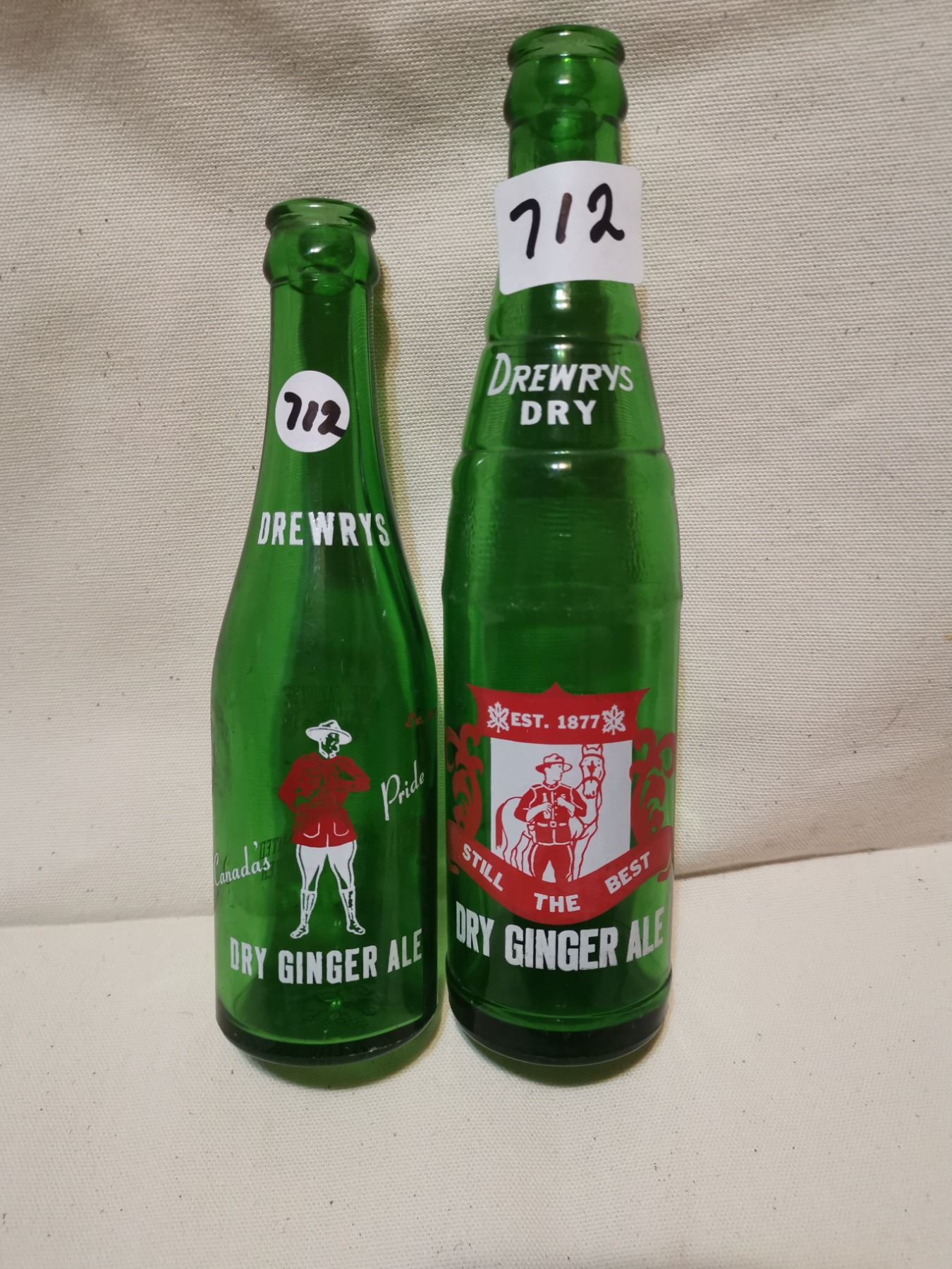 2 RCMP DREWRYS BOTTLES, SCARCE