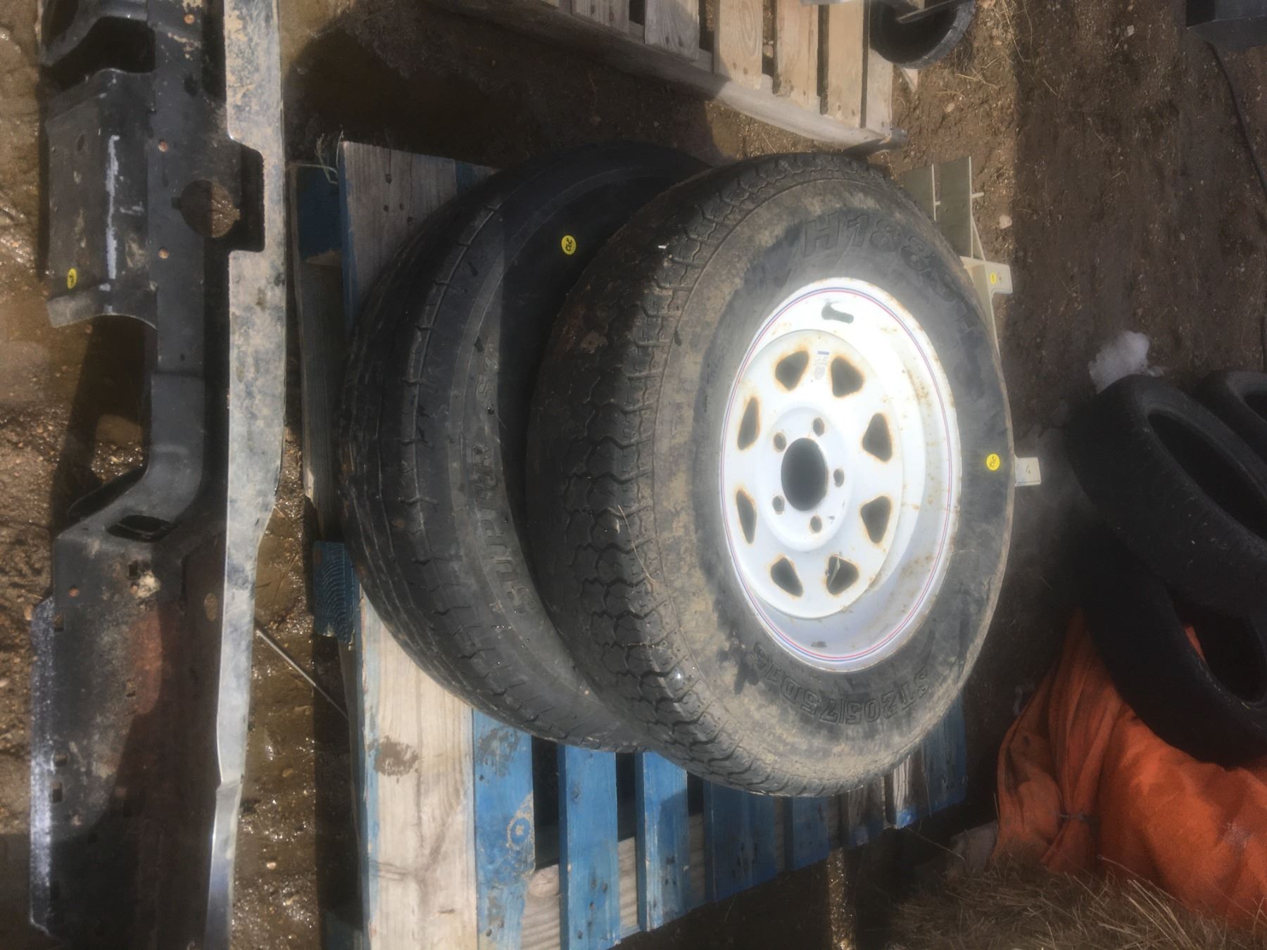 2-RIMMED TIRES (1) ST 205/75 D15, (1) ST 225/75 R15