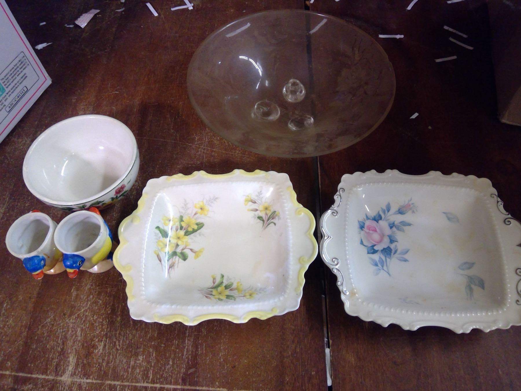 2 ROYAL ALBERT PLATES + 2 BIRD CUPS + SEVING BOWL