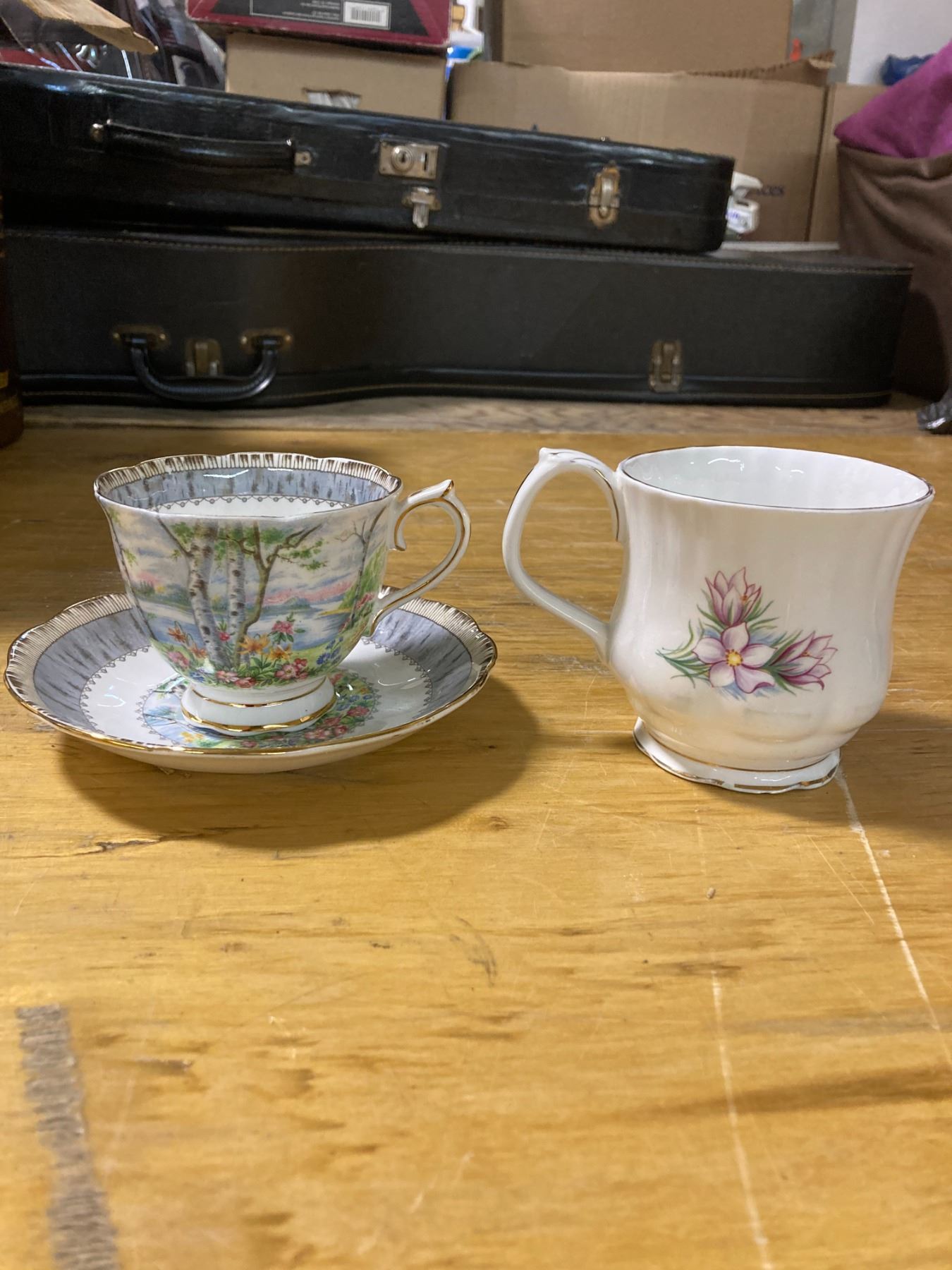 2 ROYAL ALBERT TEA CUPS PRAIRIE CROCUS + SILVER BIRCH