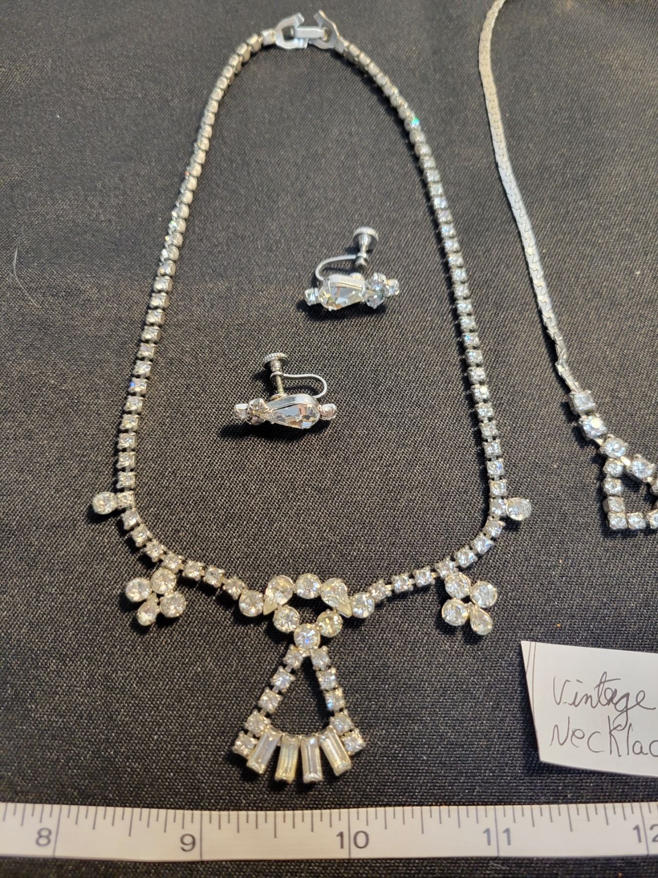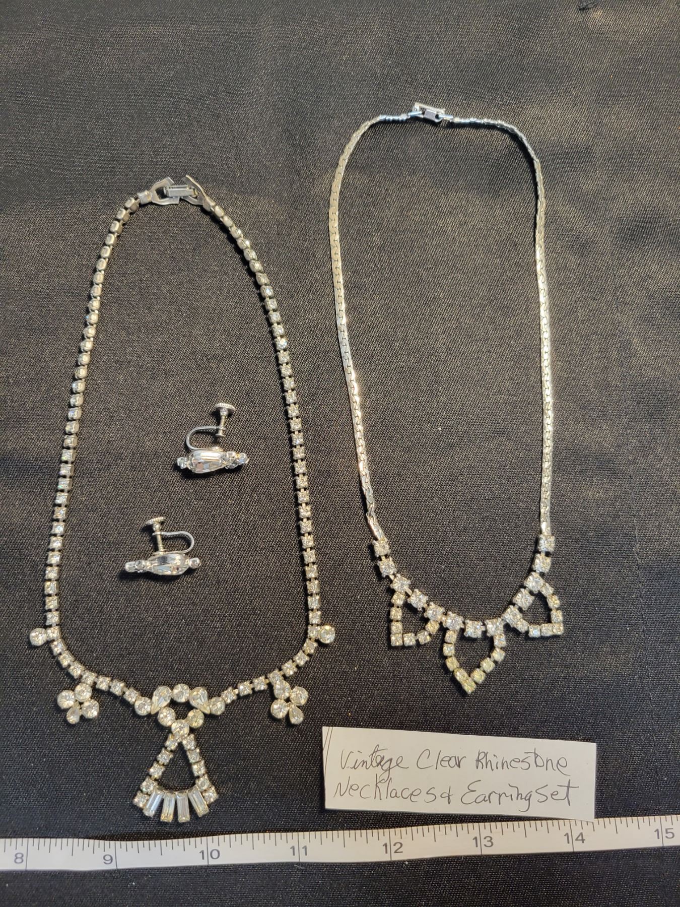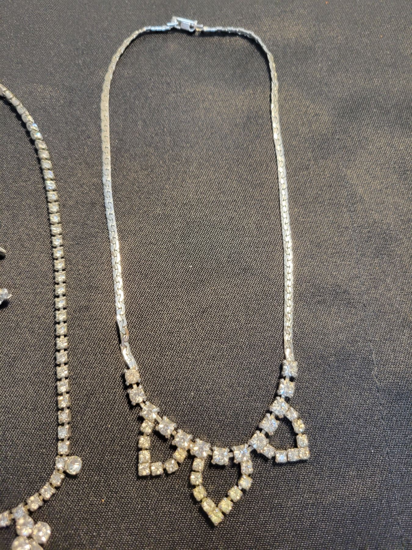 2 Rhinestone necklaces and clip on earrings