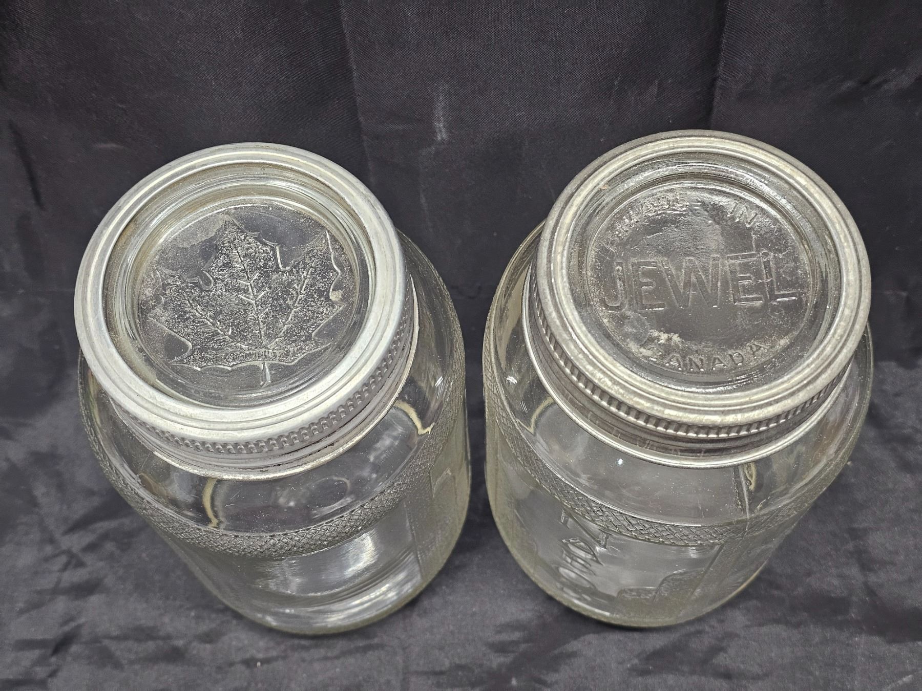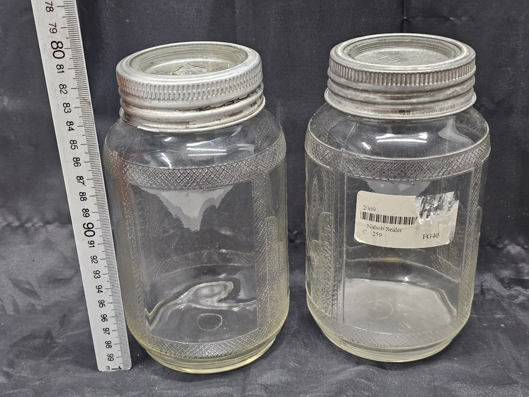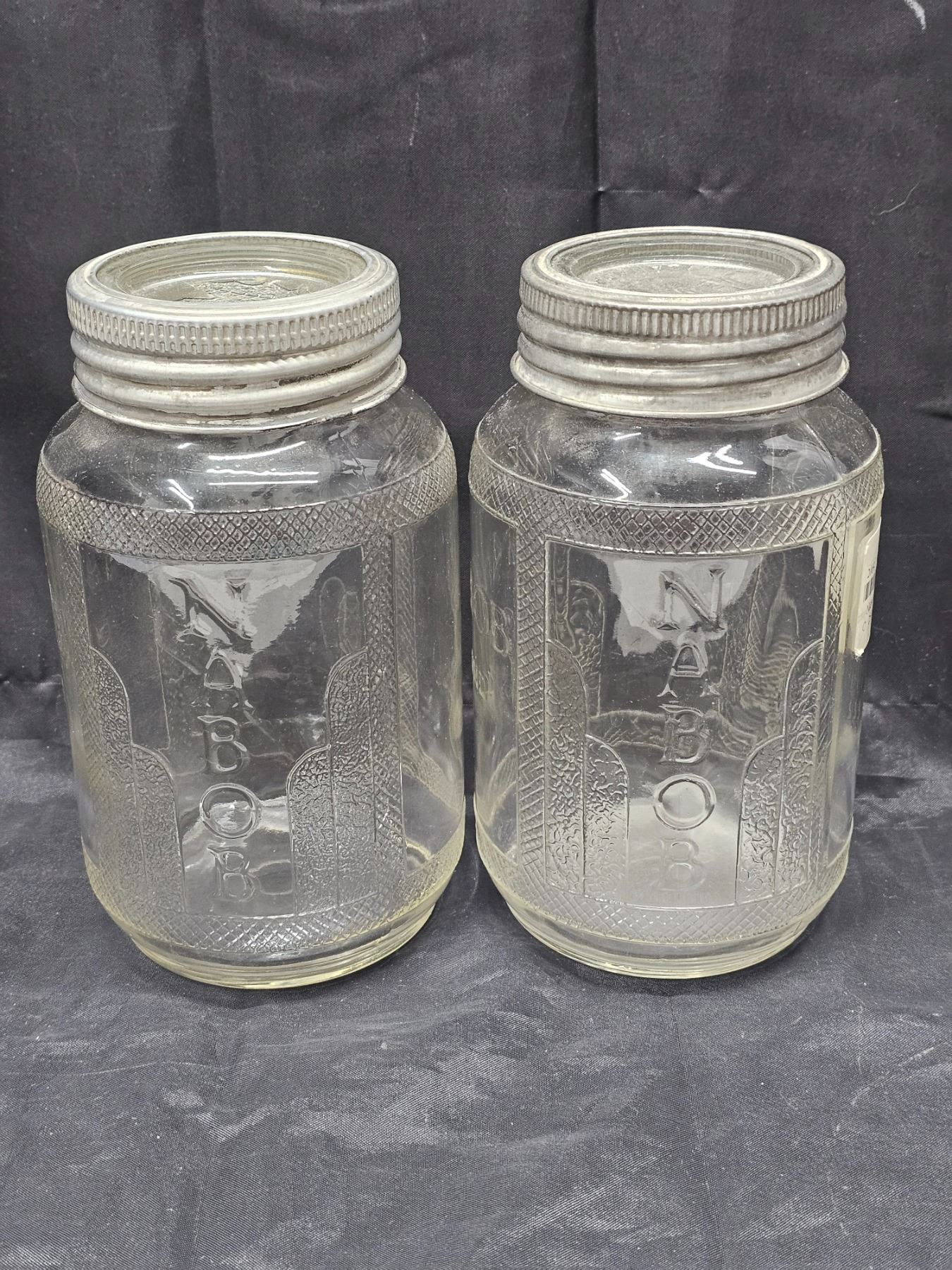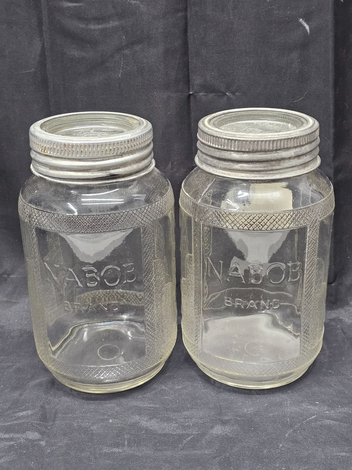 (2) Round Nabob 1qt Jars w/ Glass Lid Inserts