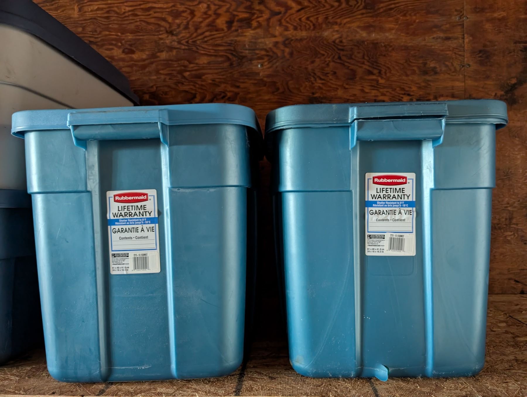 (2) Rubber Maid Storage tub w/ Misc. (Some Damage on The Tub)
