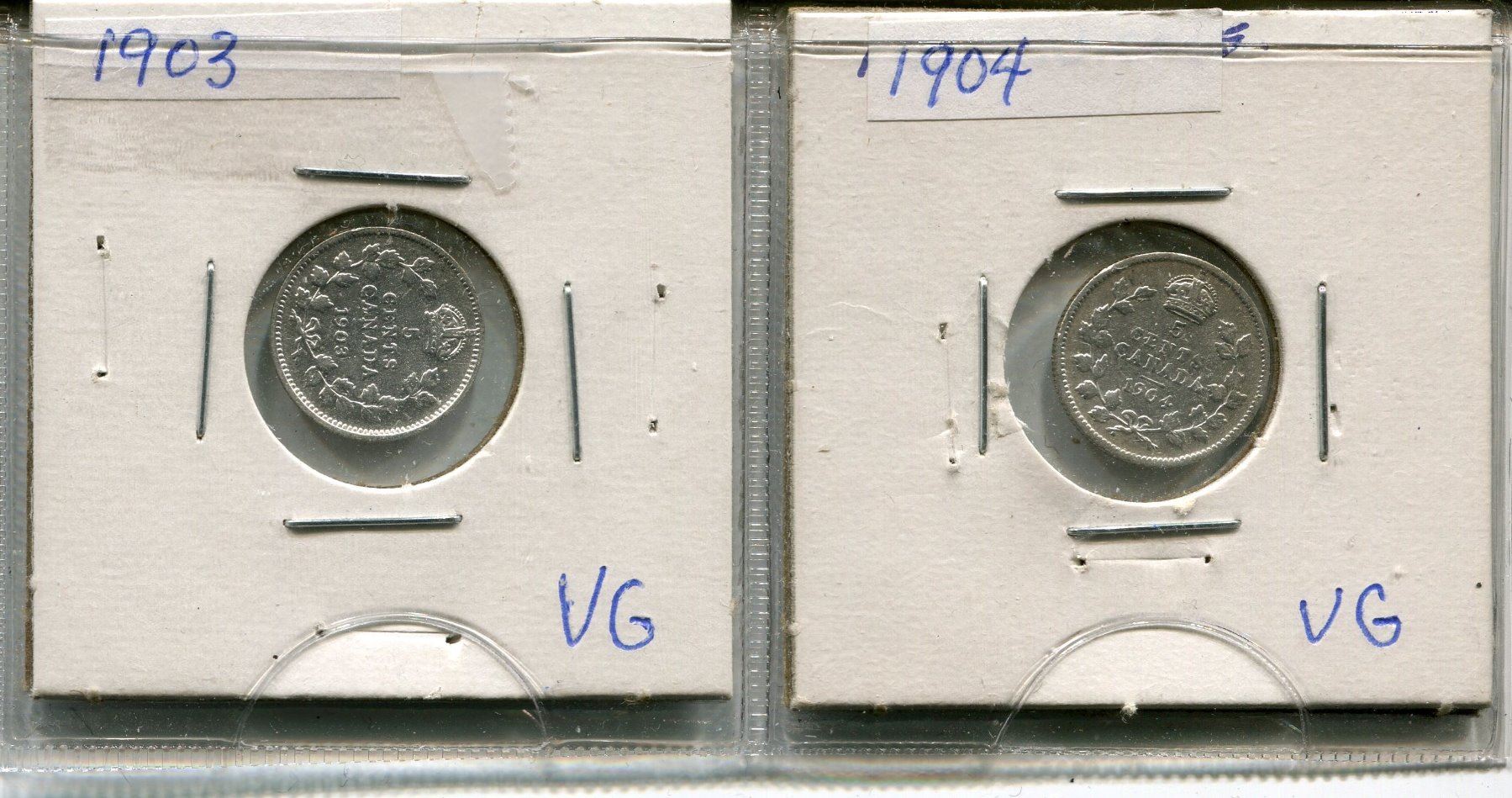 2 - *SILVER* CNDN 5 CENT PCS (1903, 1904)