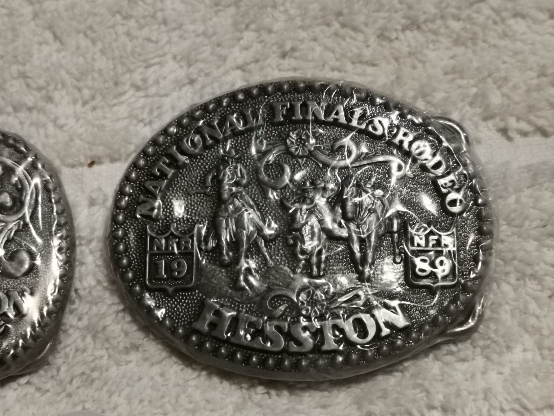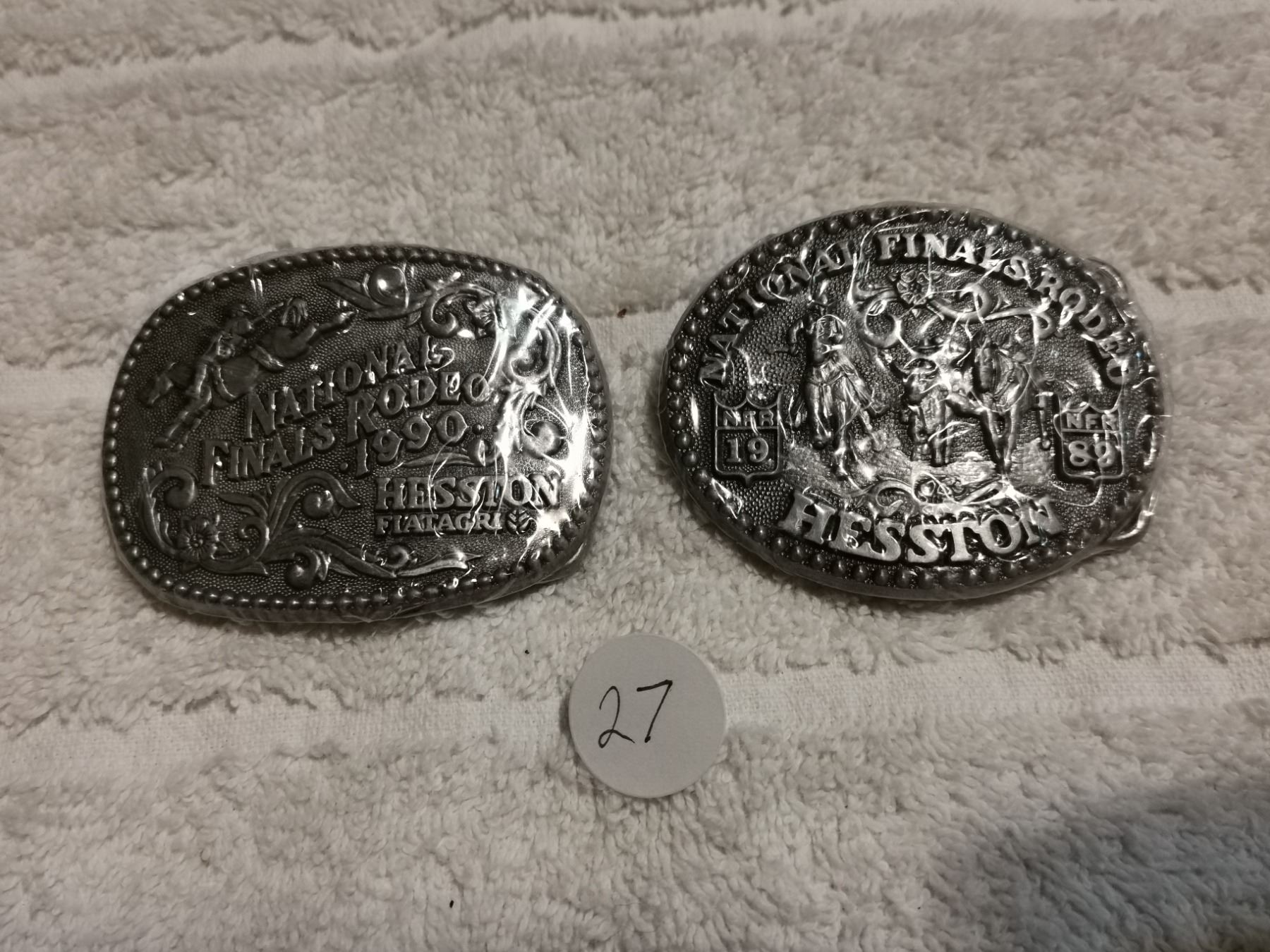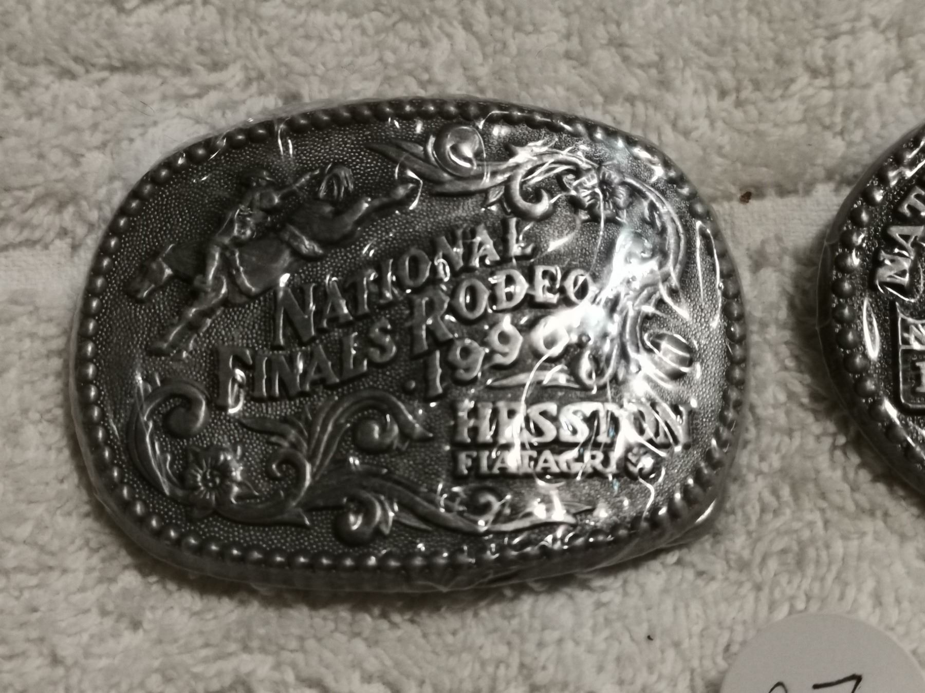 2 SMALL RARE JUNIOR NATIONAL RODEO FINAL BELT BUCKLES