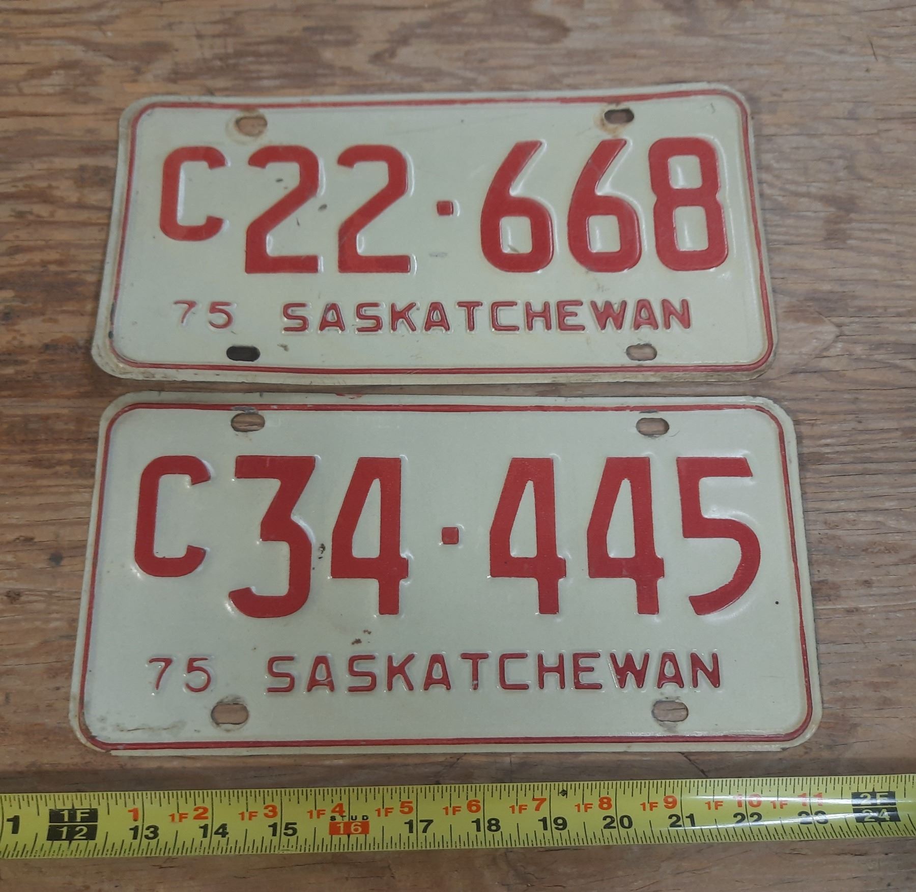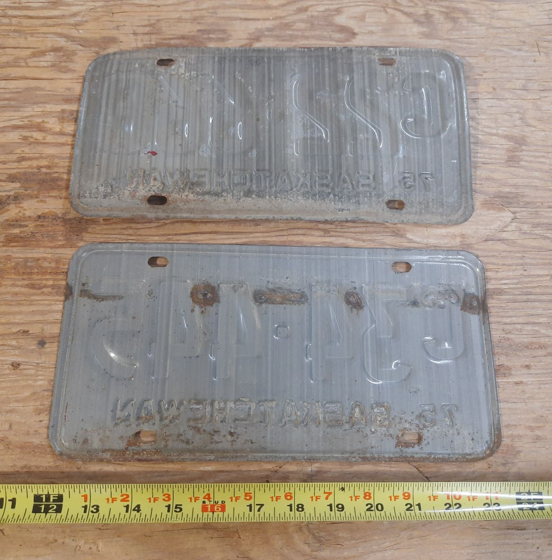 (2) Saskatchewan License Plate 1975.