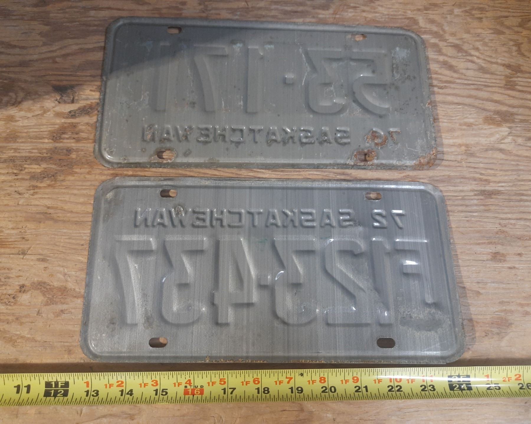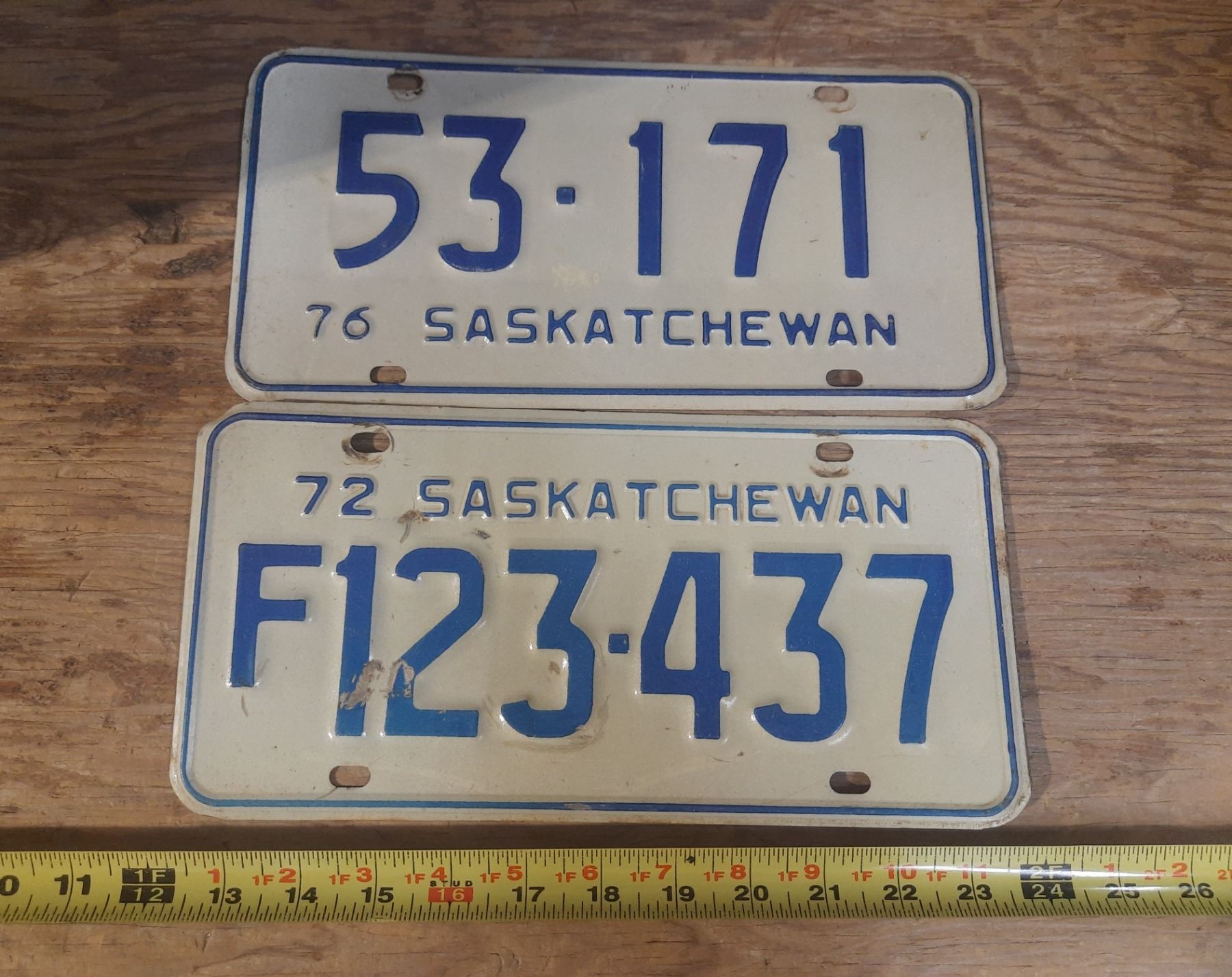 (2) Saskatchewan License Plates. 1972-76.