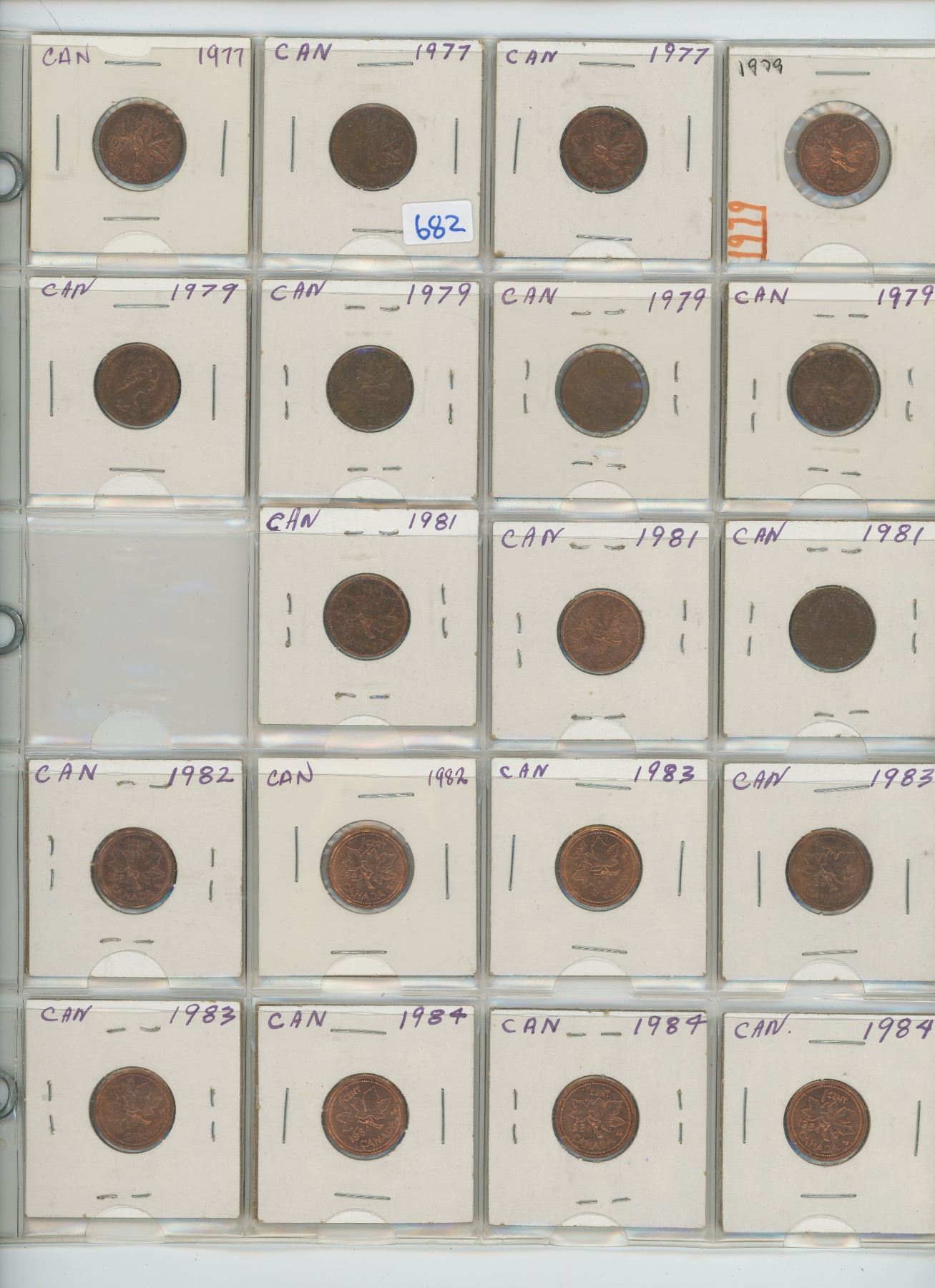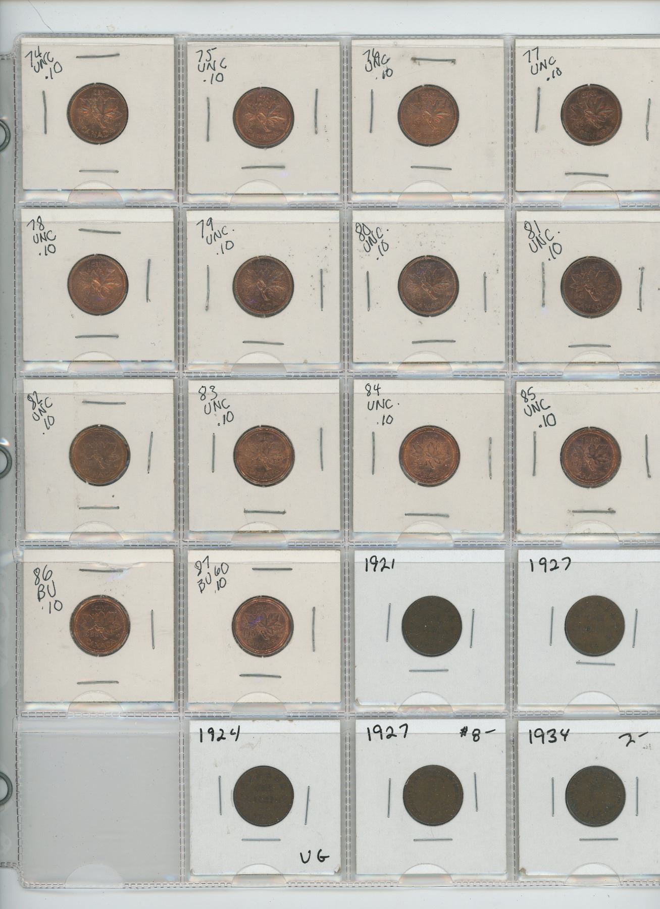 2 Sheets of 38 Canadian Small Cent Various Dates & Grades