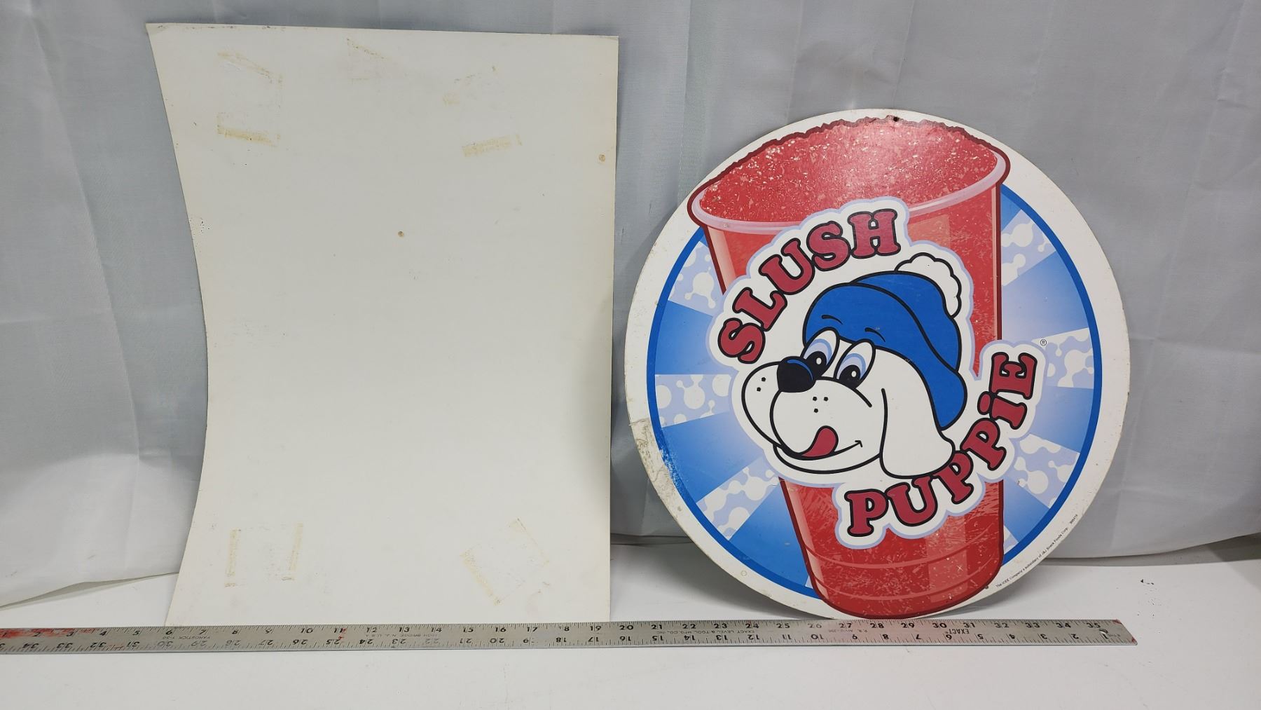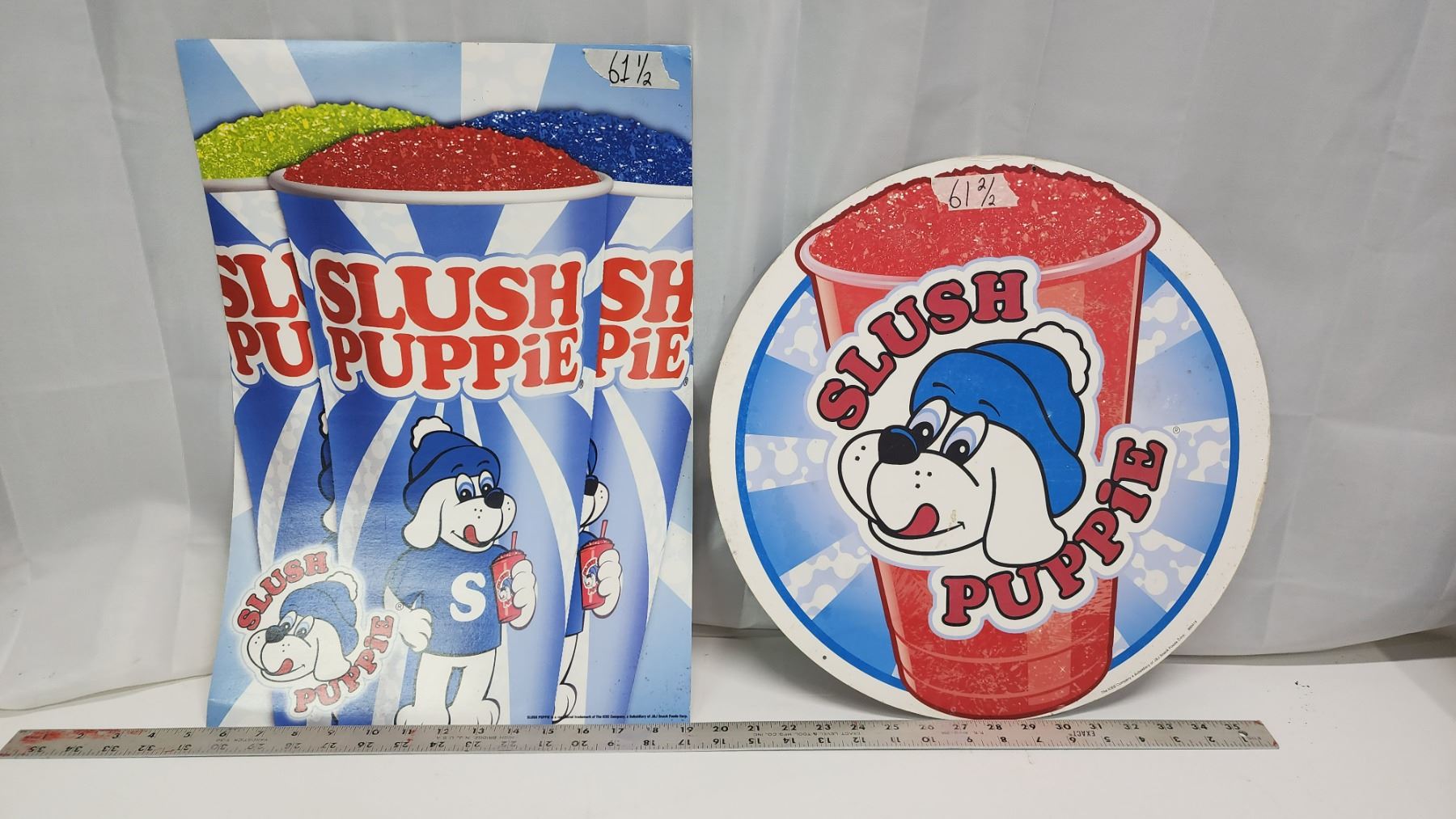2 Slush Puppies cardboard signs - 20"x14" & 16.5" dia