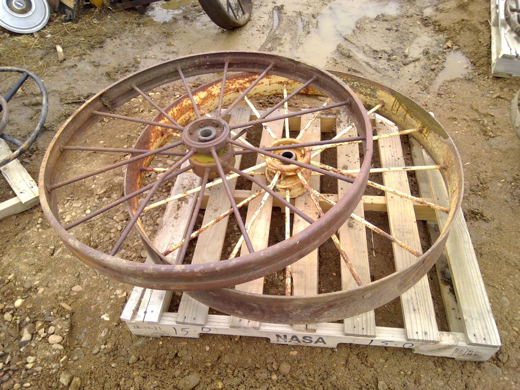 2 Steel wheels 45 1/2" diameter