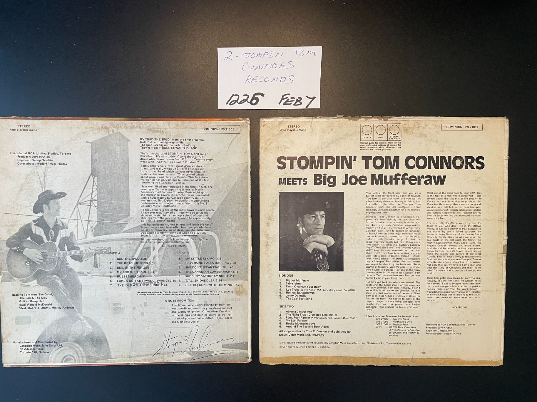 2 Stompin’ Tom Connors records