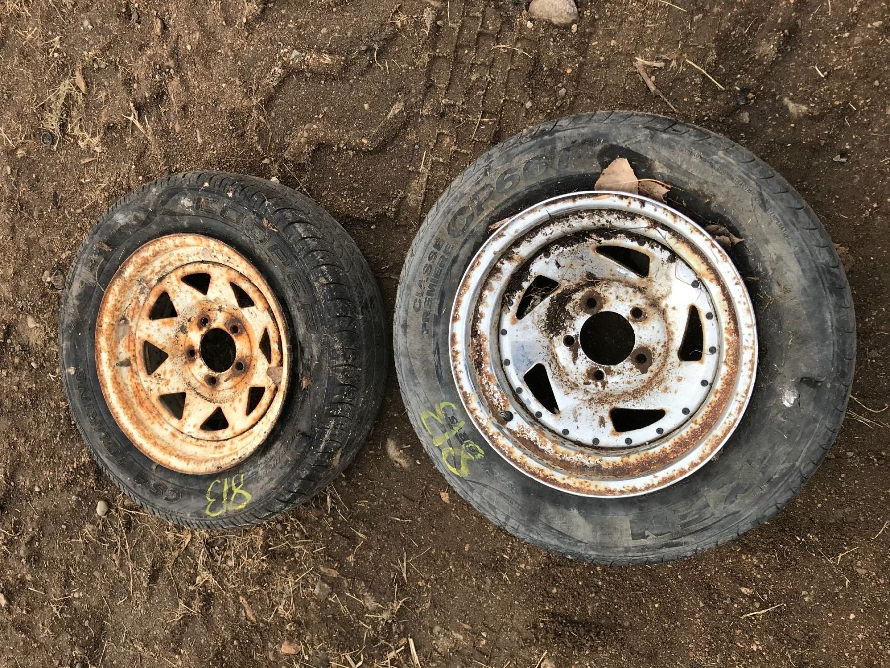 (2) TRAILER TIRES + RIMS 205/65/15