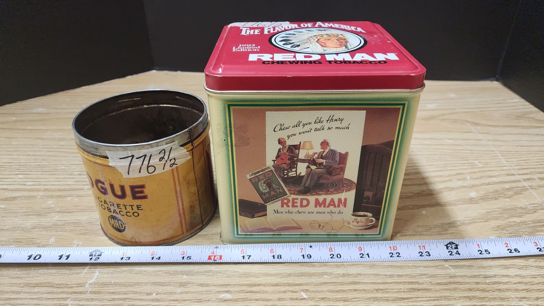 2 Tabacco tins - Red man chewing tobacco & Vogue tabacco tin