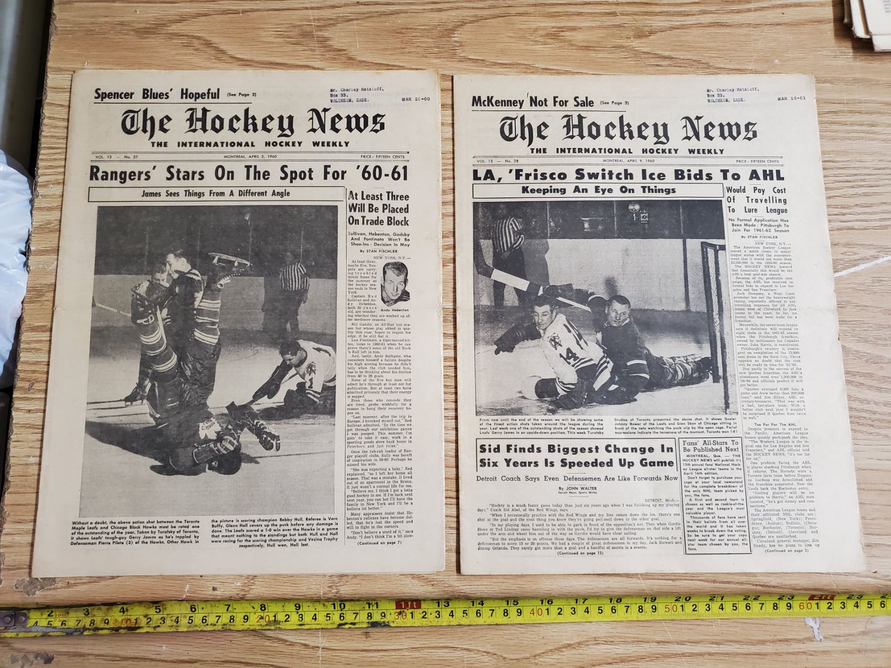 (2) The Hockey News Johnny Bower, Glen Hall on Cover 1960