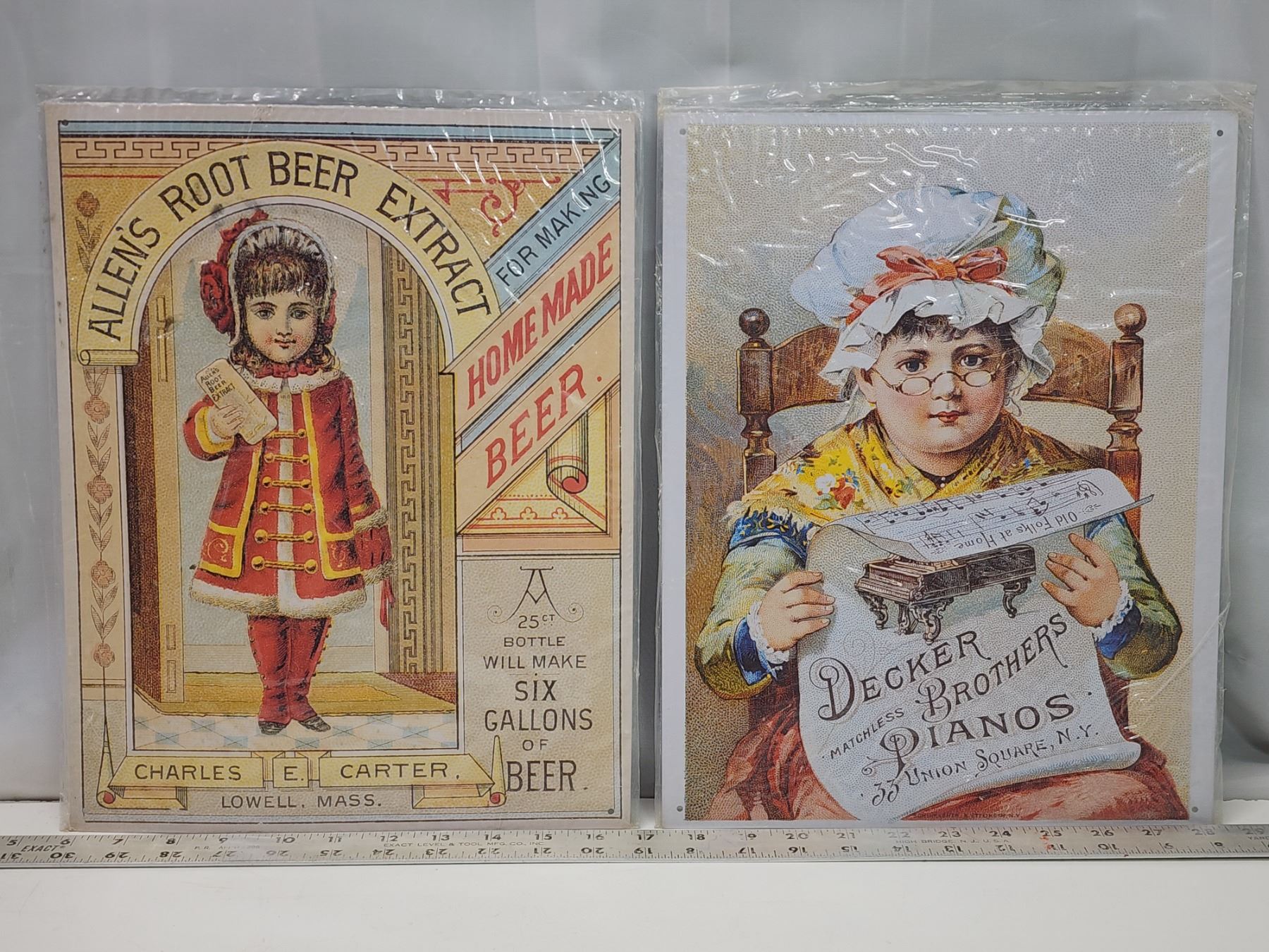 2 Tin advertisement signs - "Decker Brothers Pianos" & "Allen's Root beer"