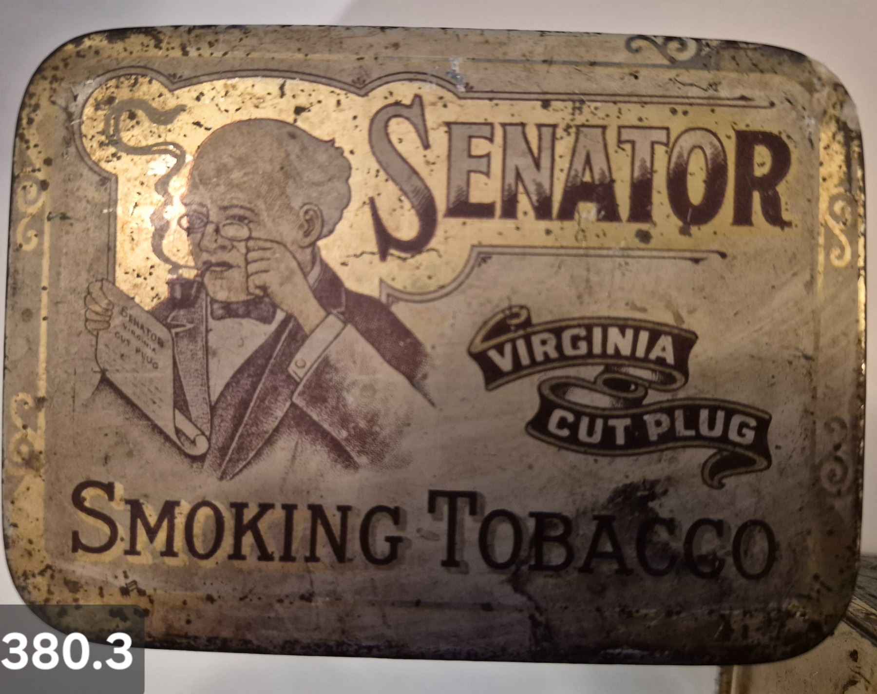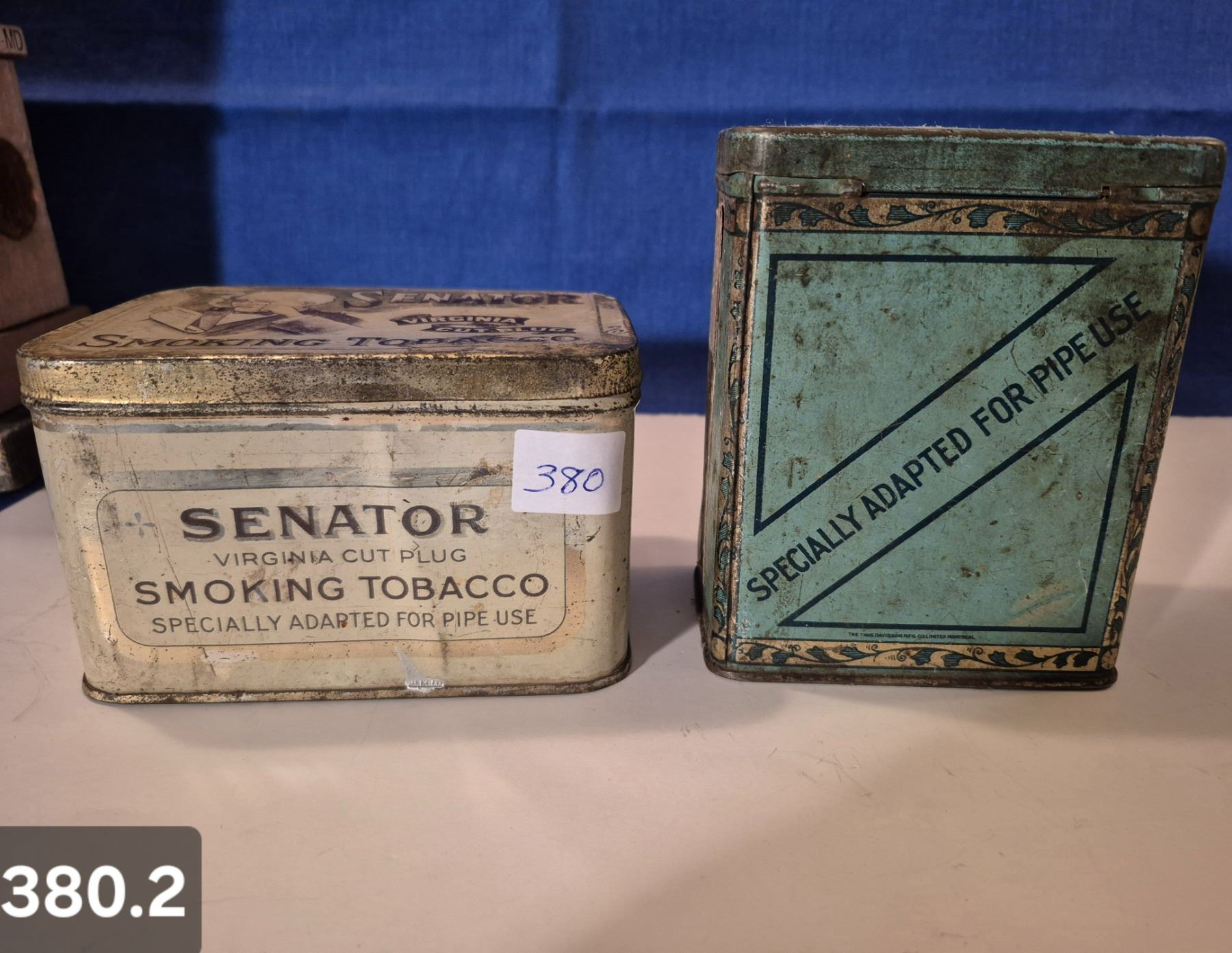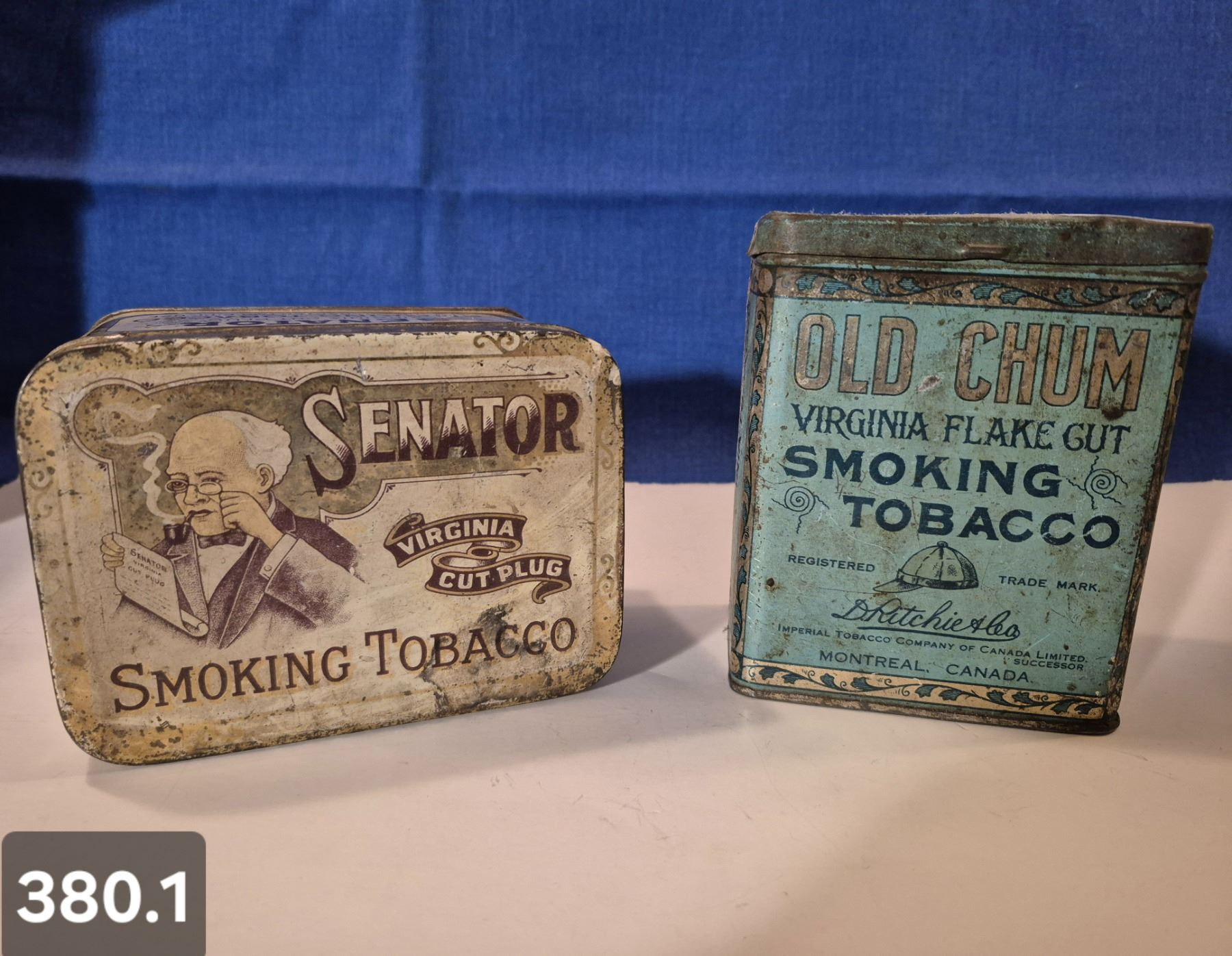 2 Tobacco Tins - Senator Virginia Cut Plug, and Old Chum Smoking Tobacco (tax label for 1923)