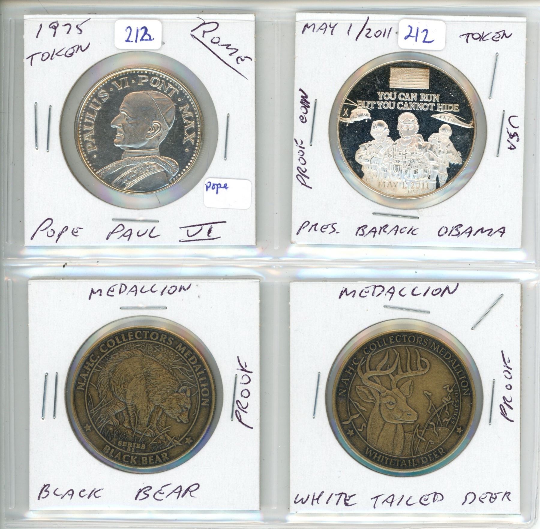 2 Tokens and 2 Medallions( Pope Paul VI and Barack Obama- and Black Bear and White Tailed Deer