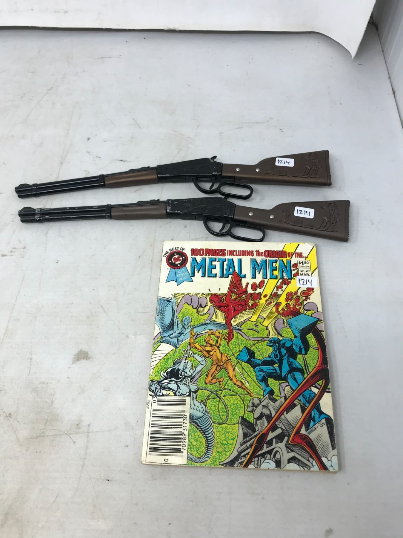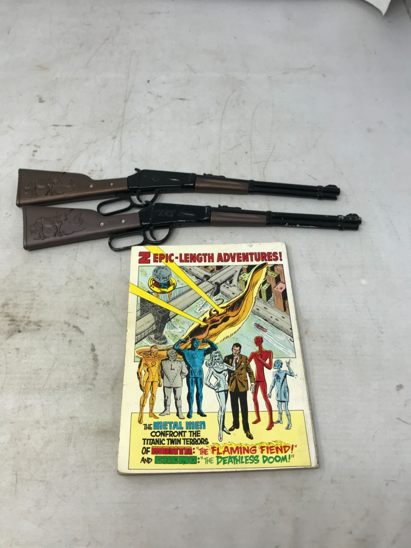 2 Toy Lever Action Rifles + Metal Man Comic Book