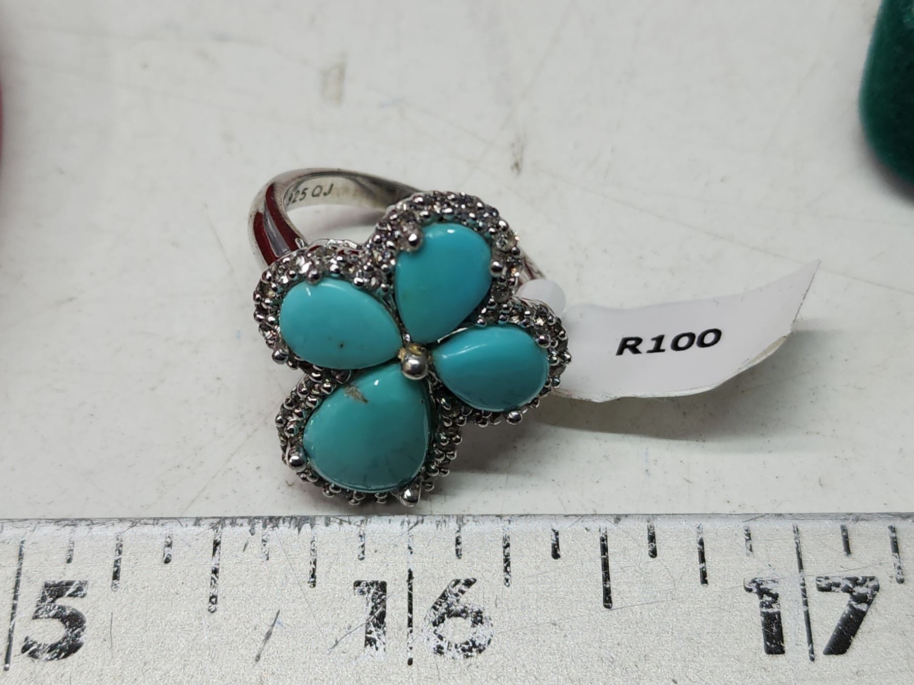 2 Turquoise colored, .925 silver rings - in ring boxes