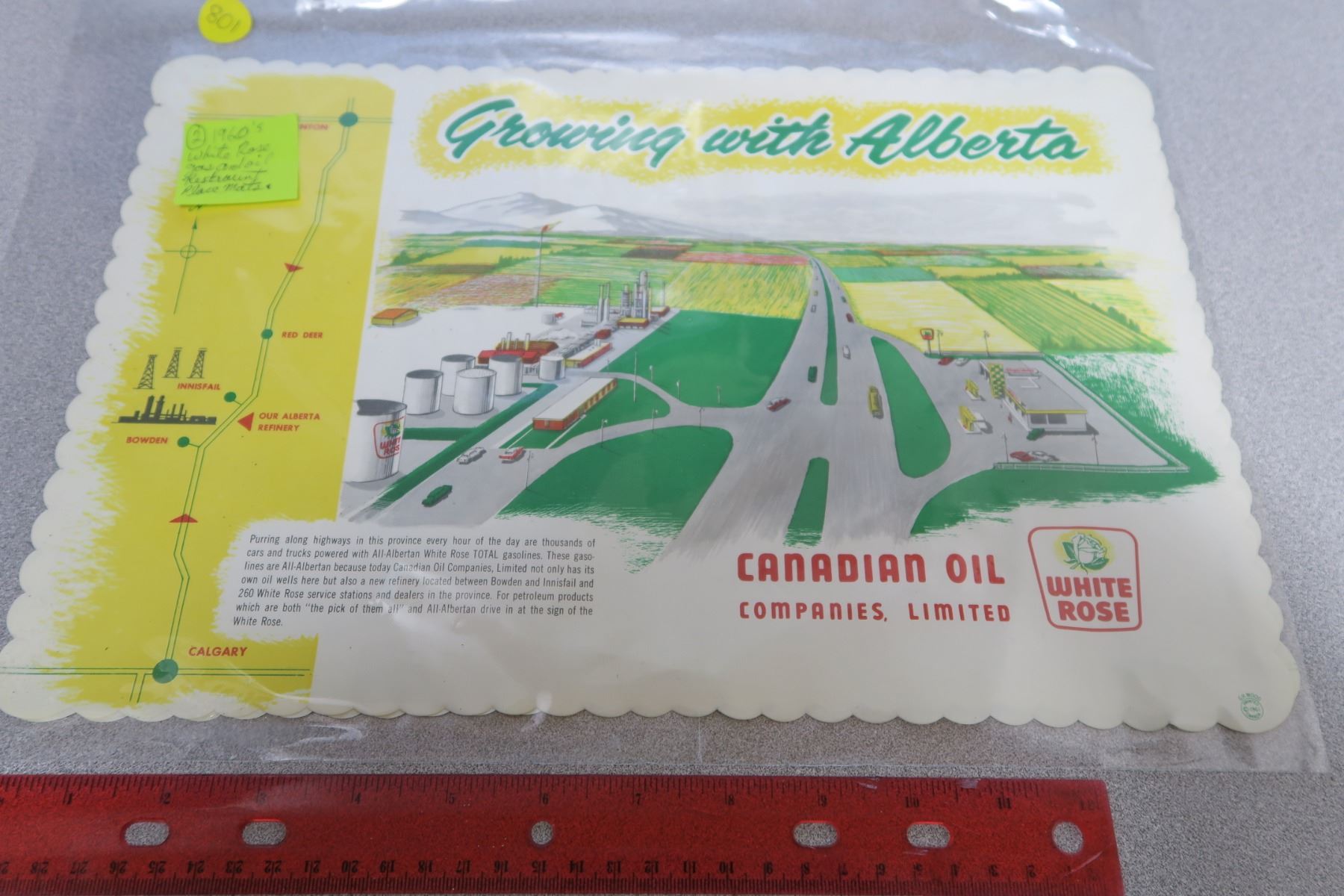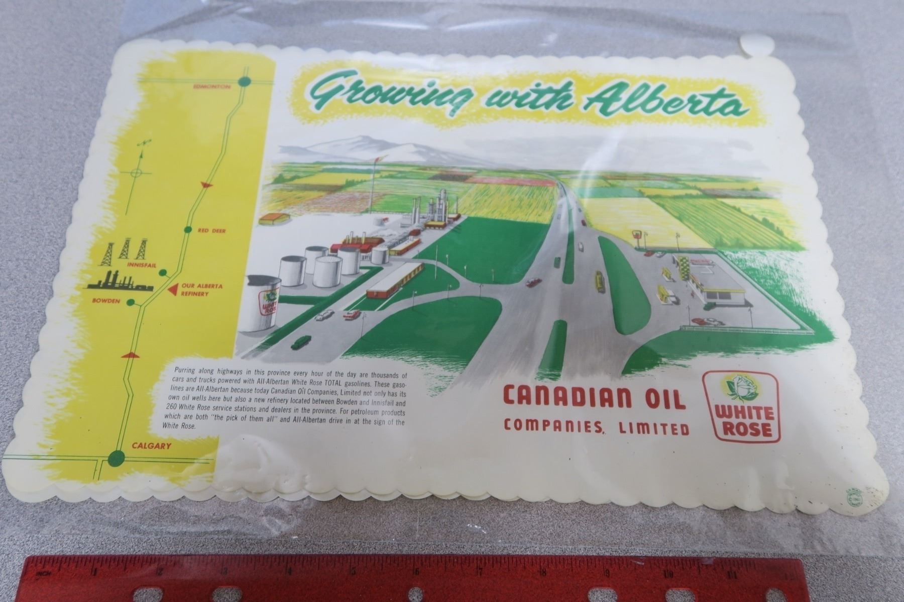 2 (Two) 1960's White Rose gas & oil restaurant place mats