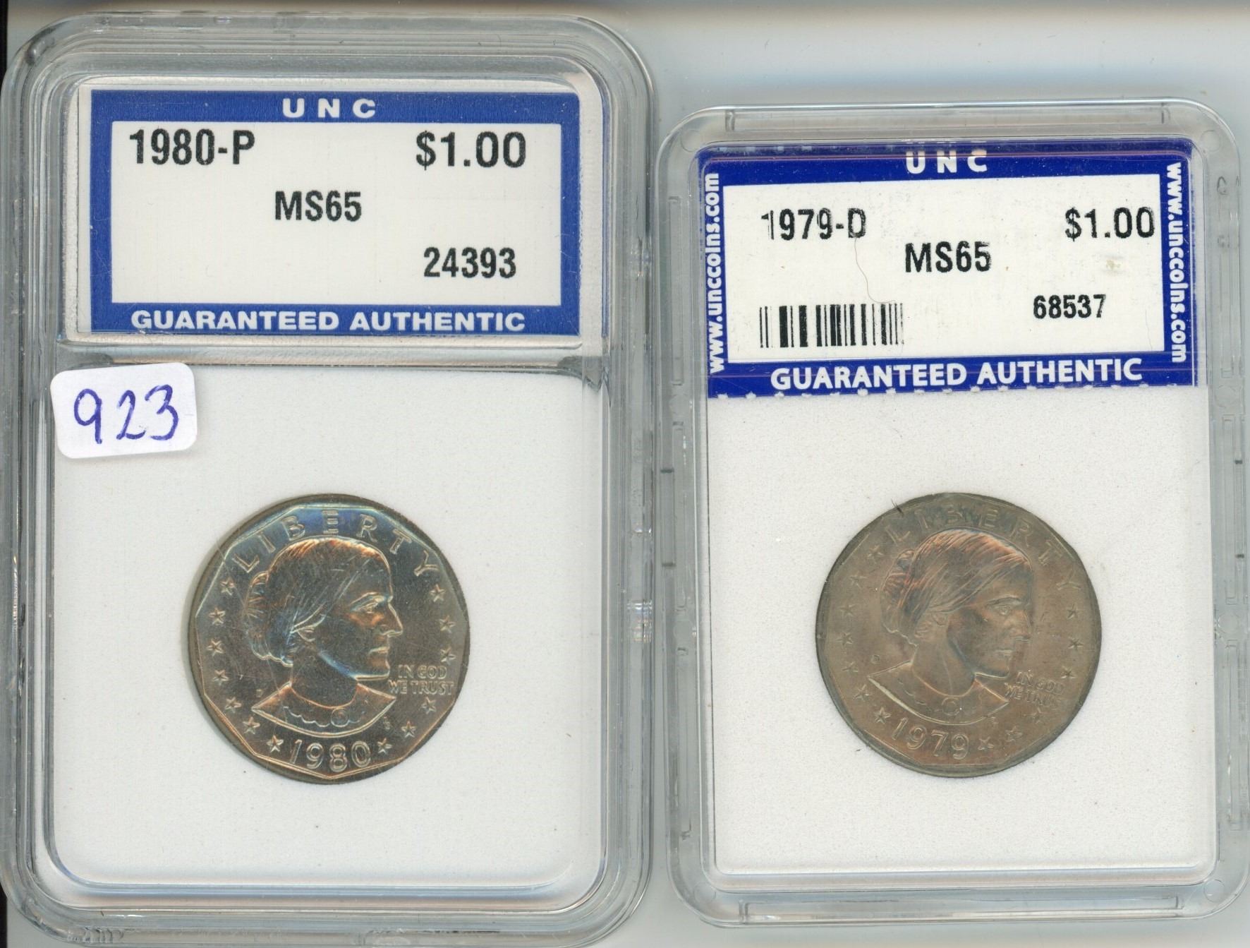 2 - US SUSAN B. ANTHONY DOLLARS 1979-D MS65, 1980-P MS65