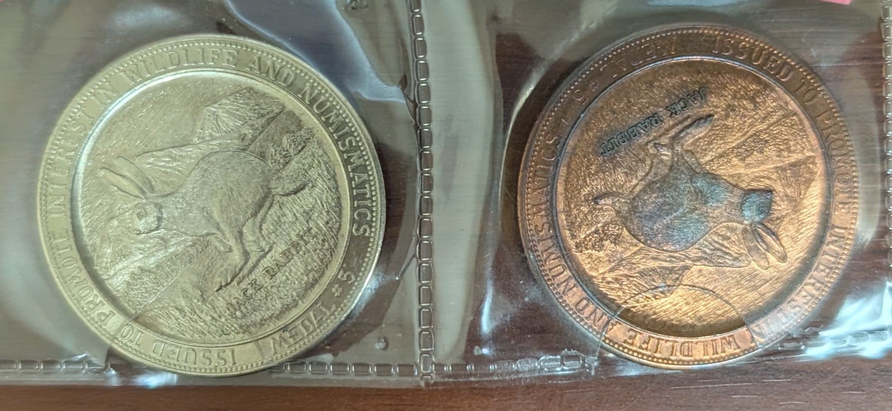 (2) Uncirculated American Wildlife Series Wild Wood Medallic Arts Medals (Jack Rabbit)