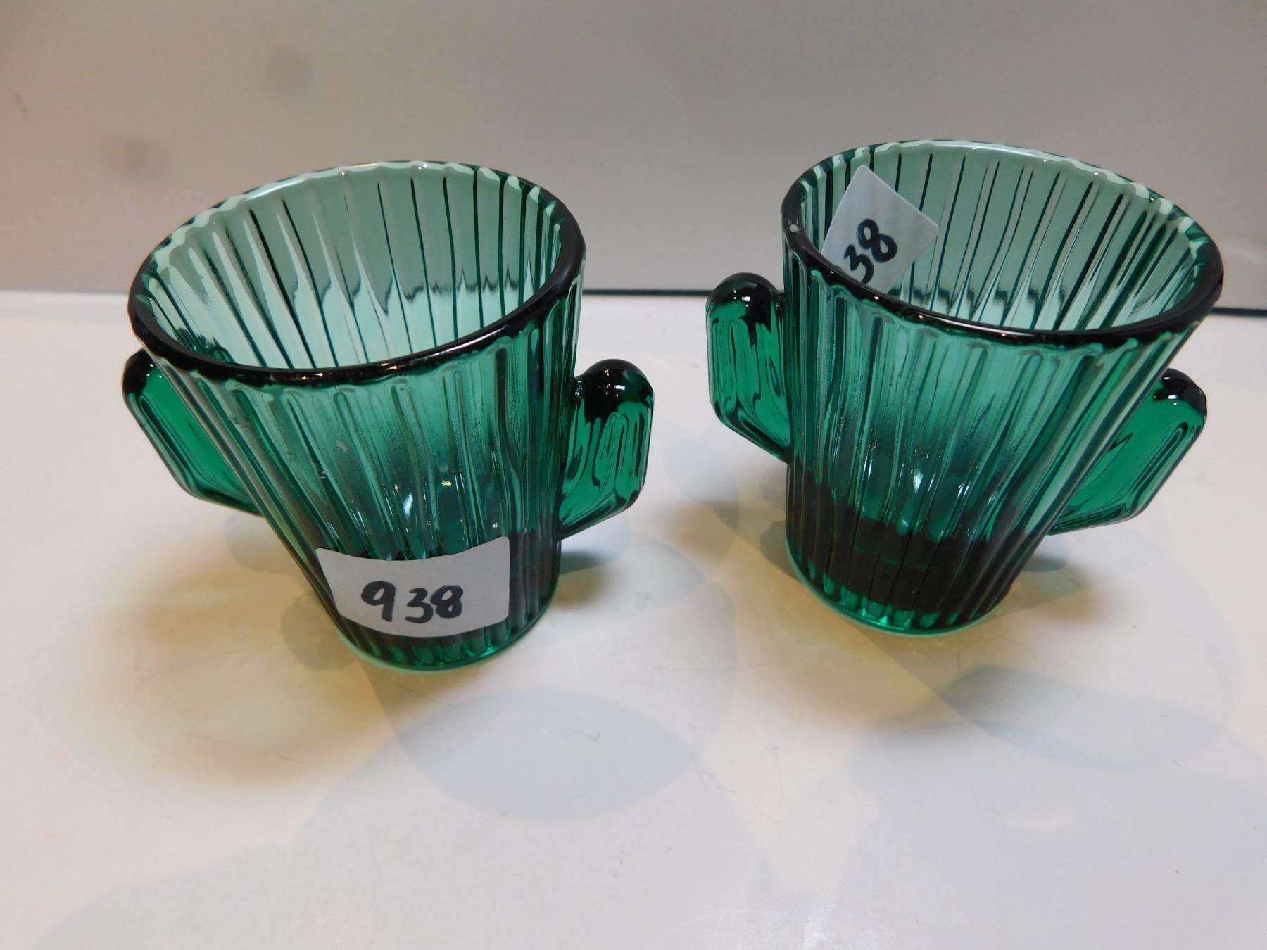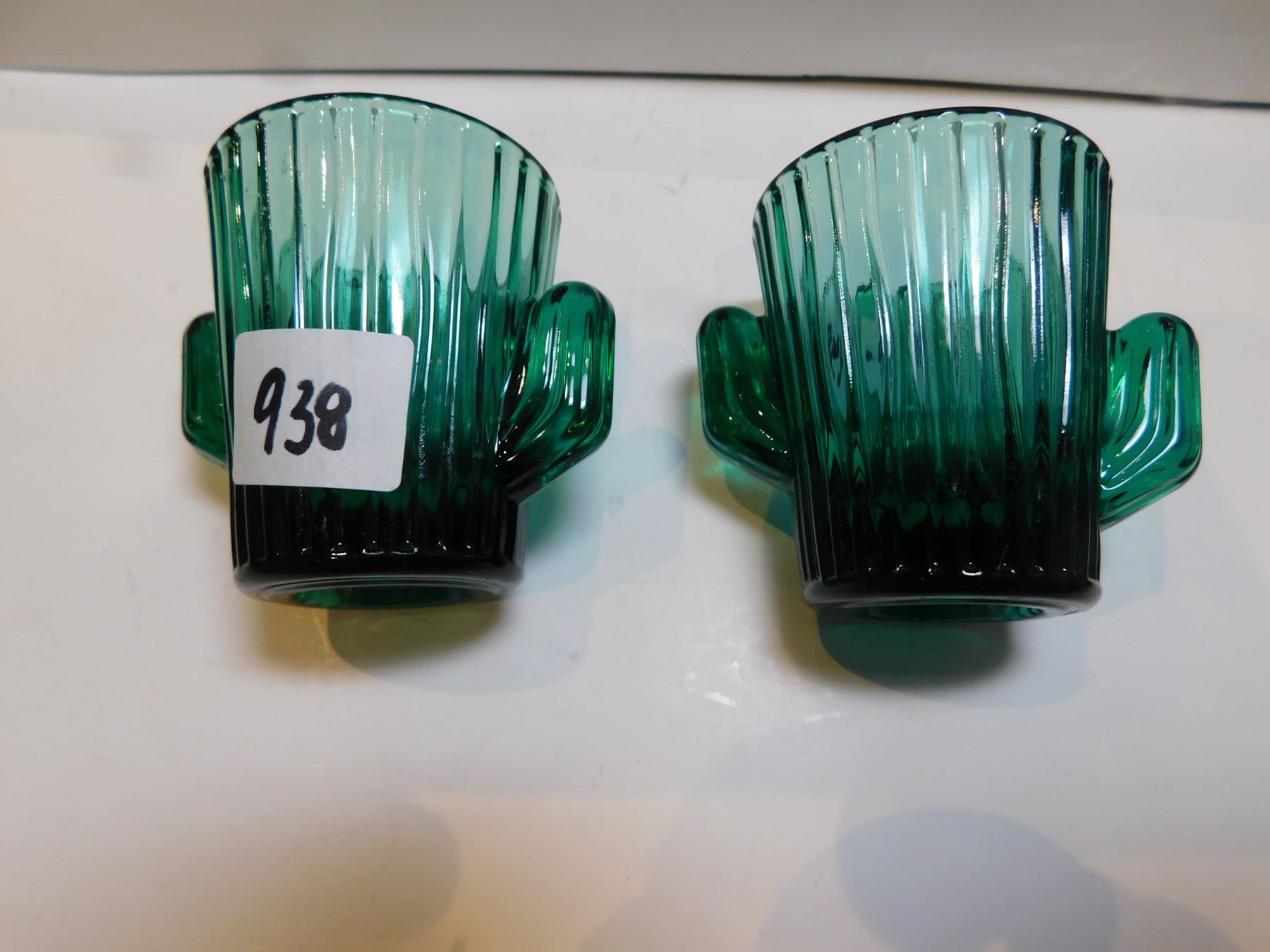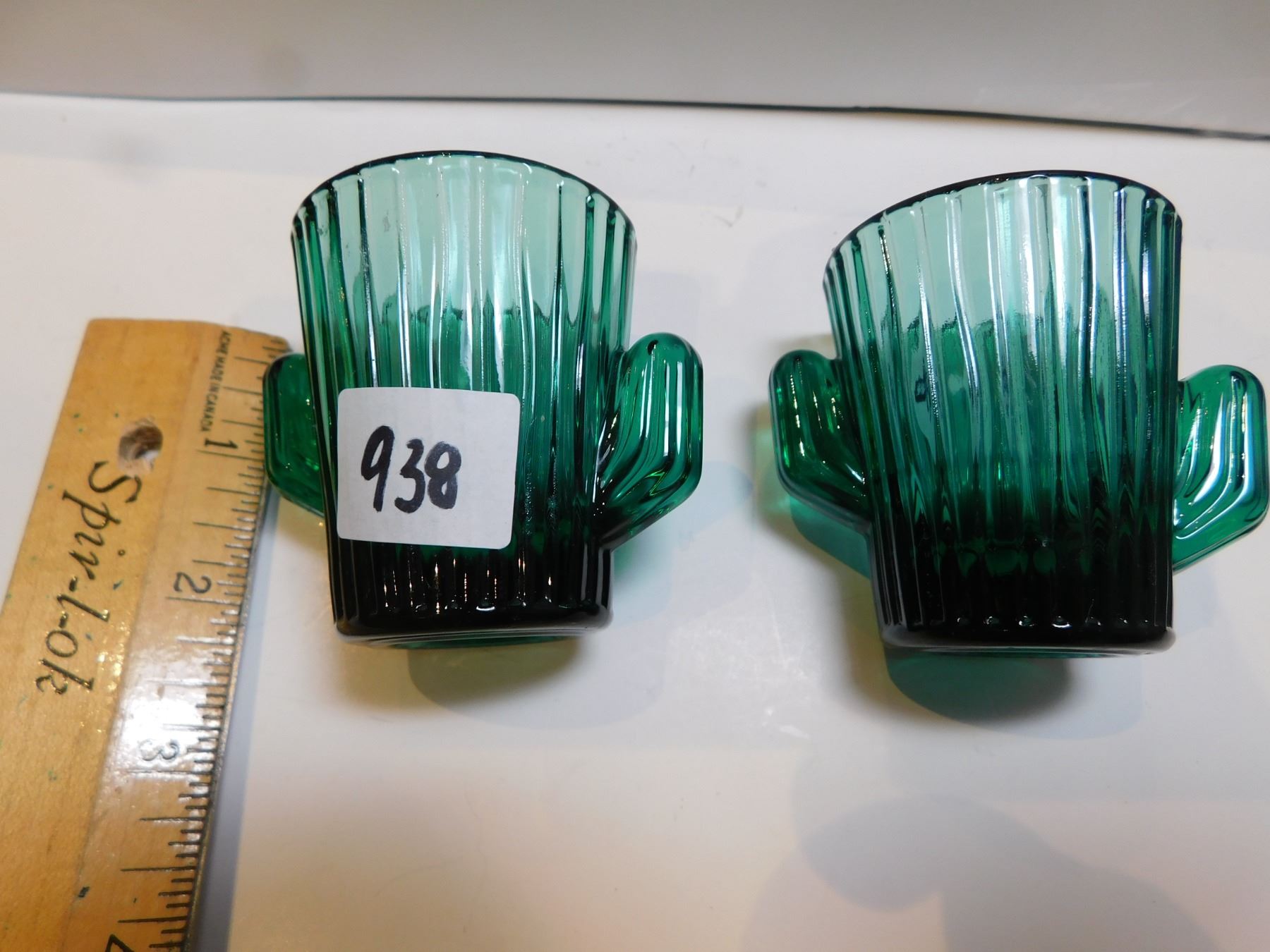 2-VINTAGE LIBBY GREEN CACTUS SHOT GLASSES/ TOOTHPICK HOLDER