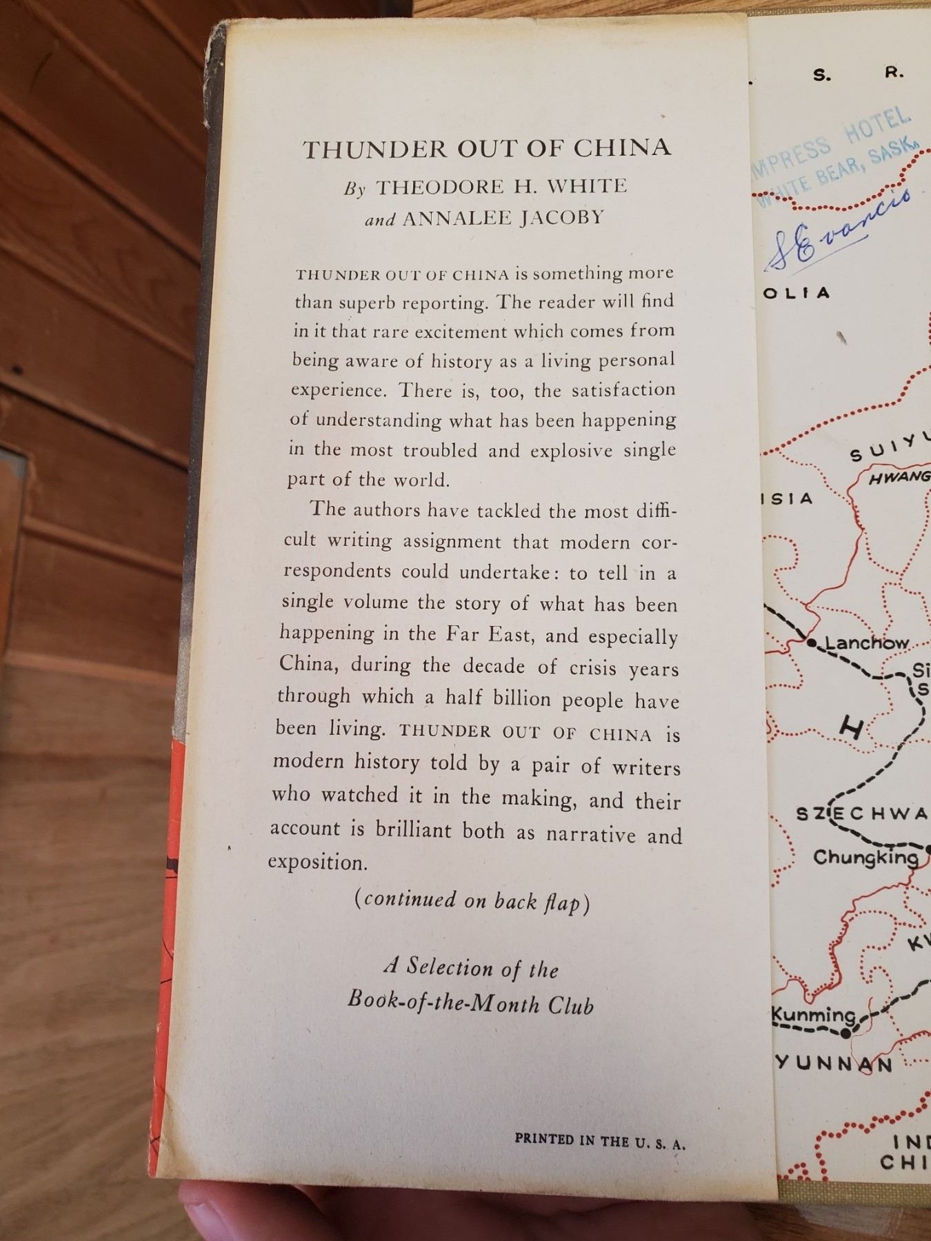 2 VINTAGE NOVELS 1952, 1946*BOOK IN GOOD CONDITION, DUST JACKET NOT SO MUCH* CHINA THUNDER