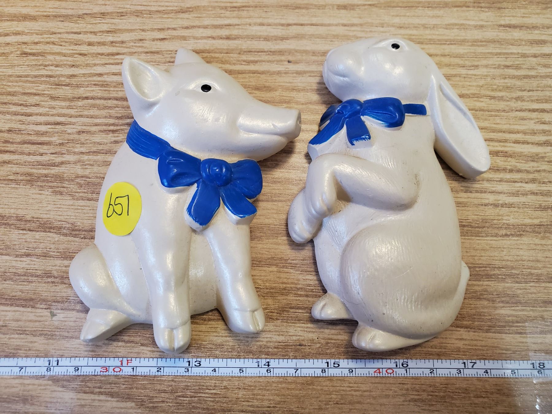2 VINTAGE PIG & RABBIT CHALKWARE