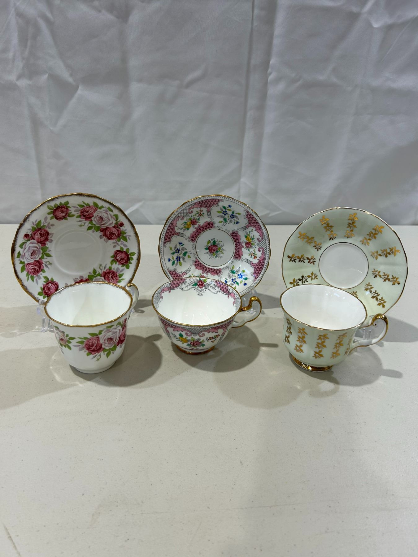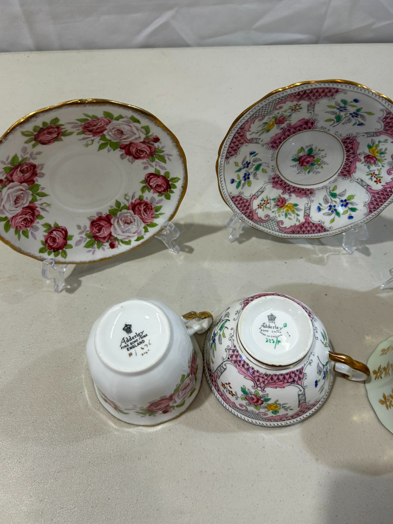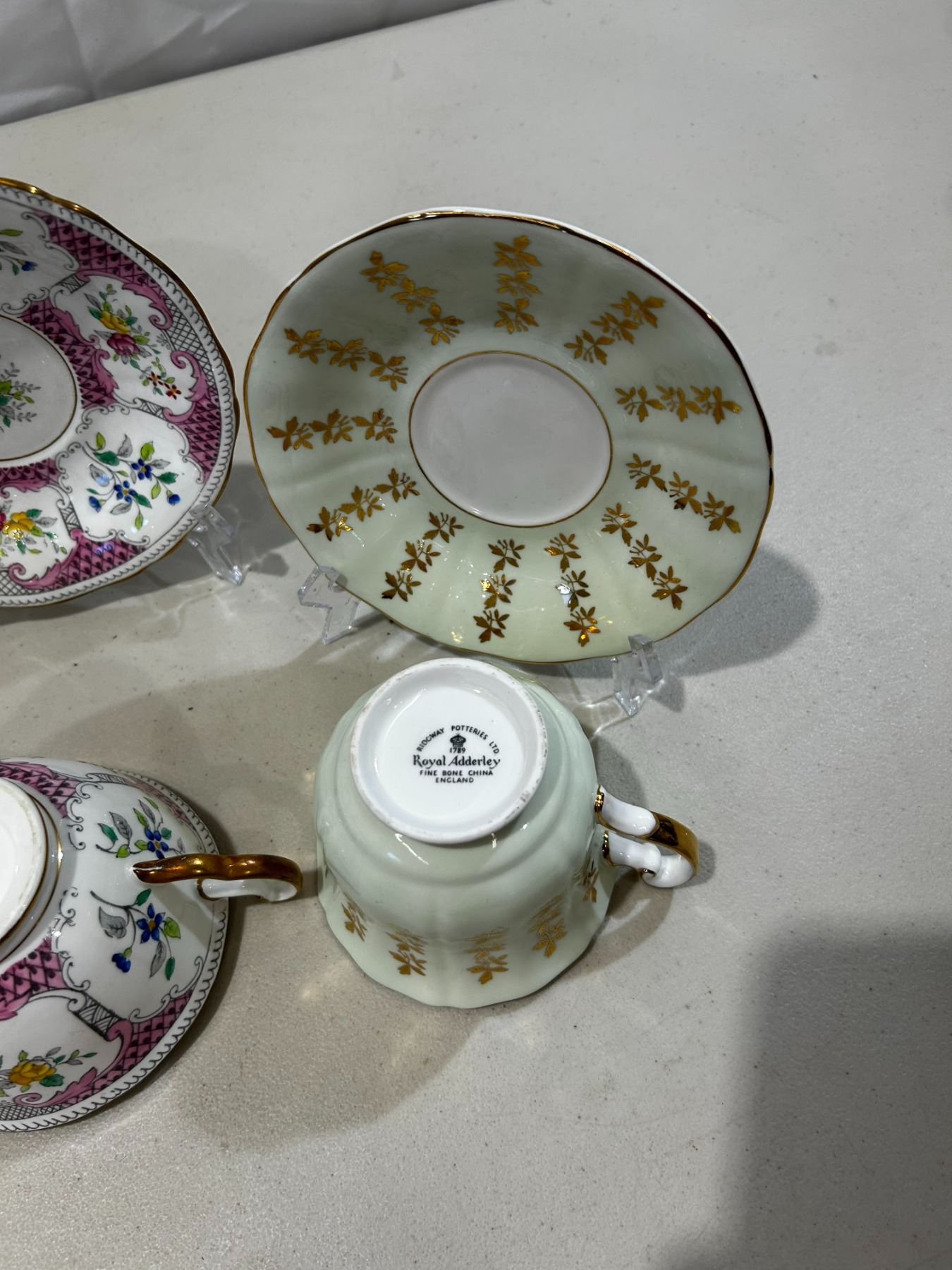 2 Vintage Adderley teacups and saucers & 1 Vintage Royal Adderley teacup and saucer