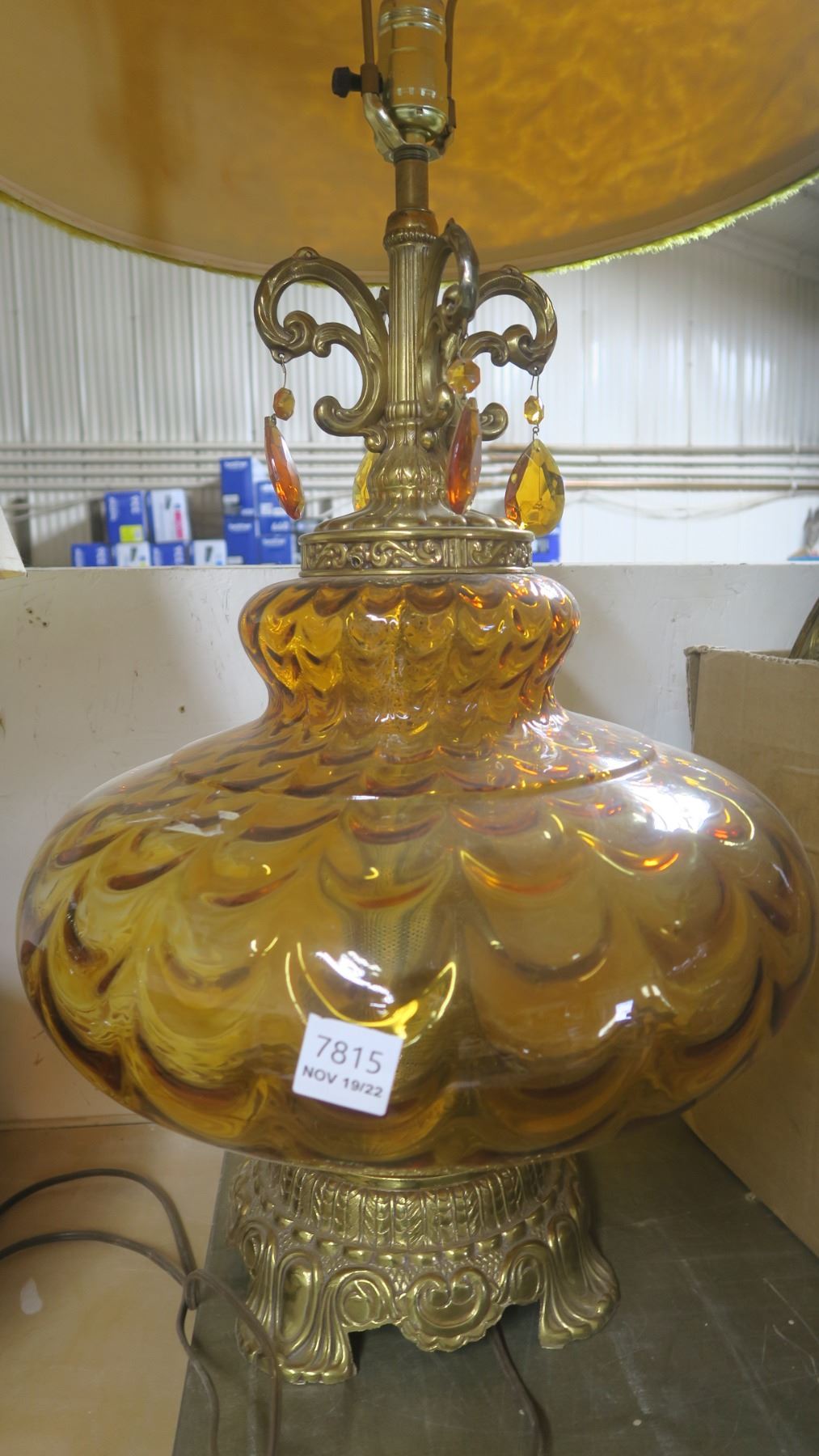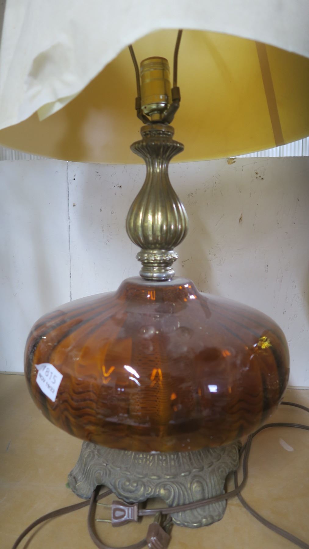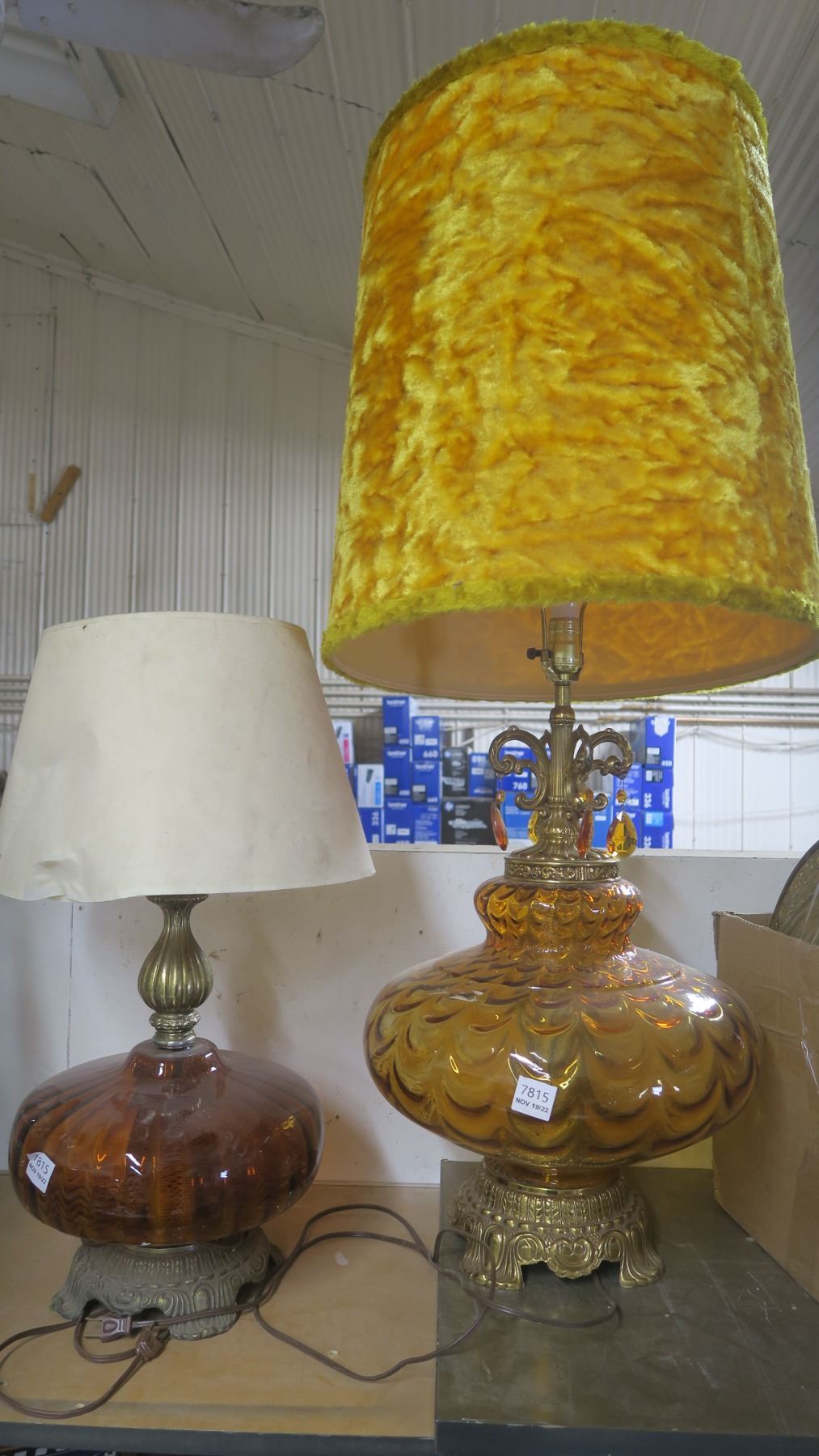 2 Vintage Amber Glass Table Lamps