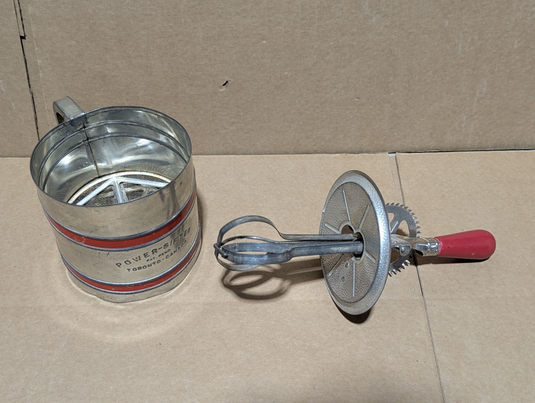 (2) Vintage Baking Items Power-Siffer and hand Mixer