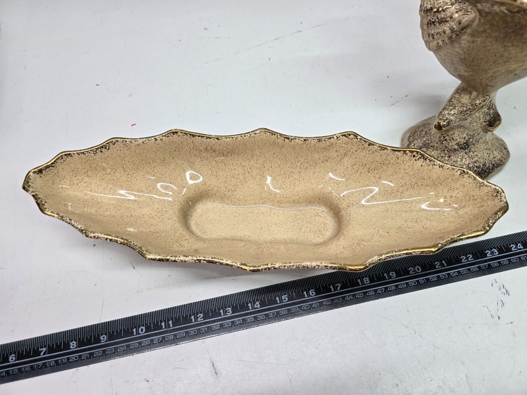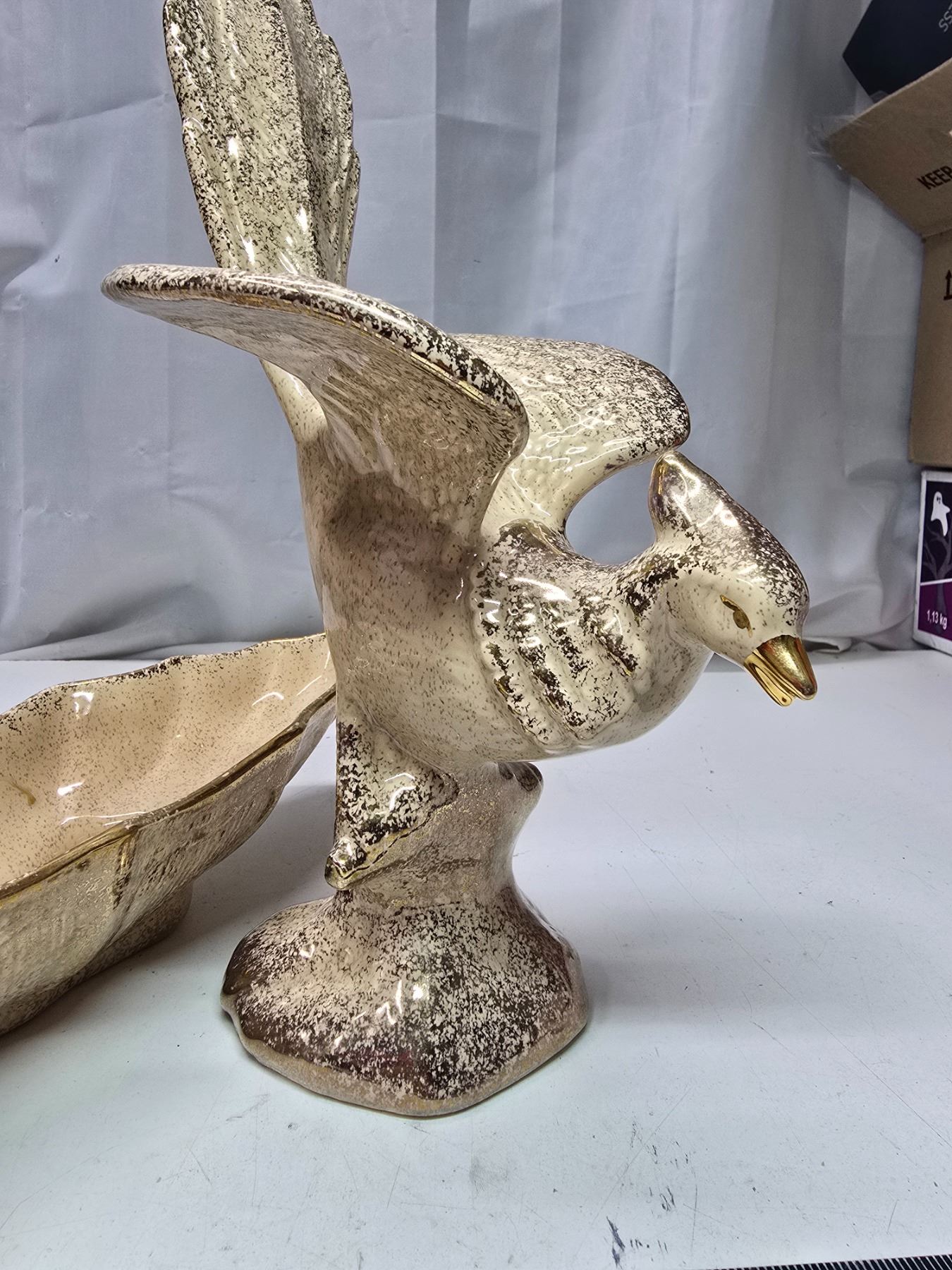 2 Vintage "California Original" pottery serving dish & pheasant figurine