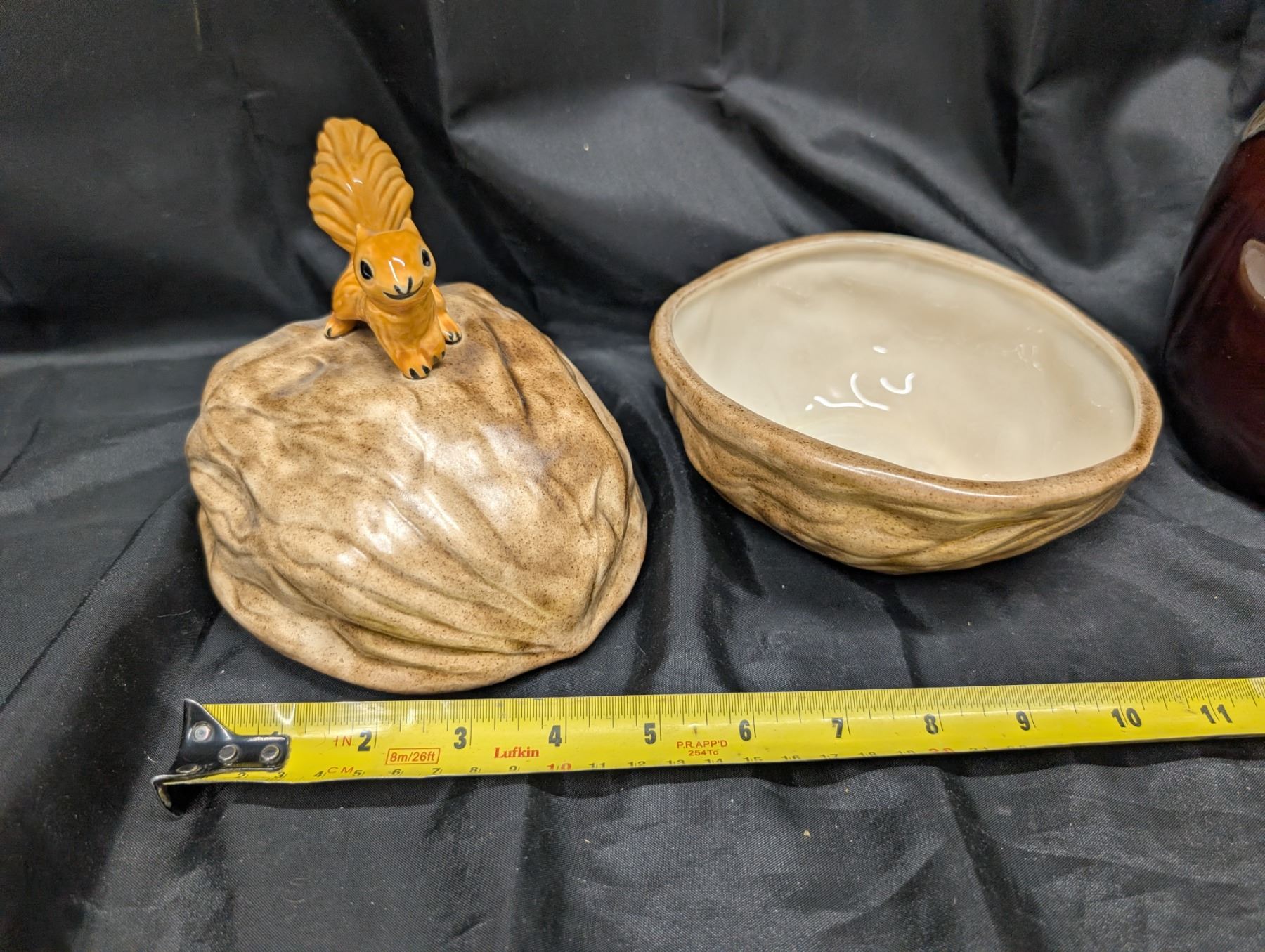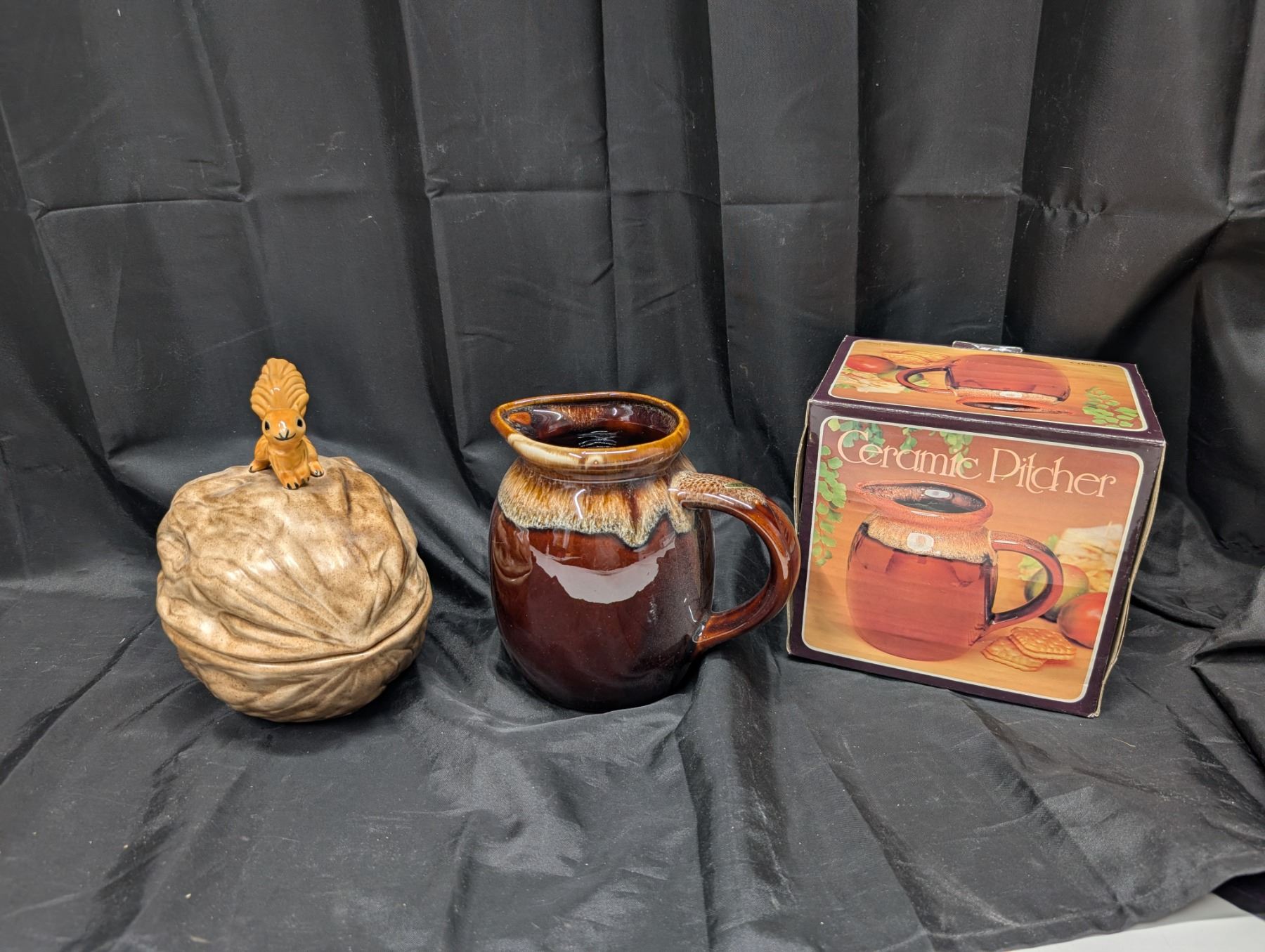 (2)Vintage Ceramic Pieces (Squirrel and walnut Tray and lid and Pitcher w/ Original Box)