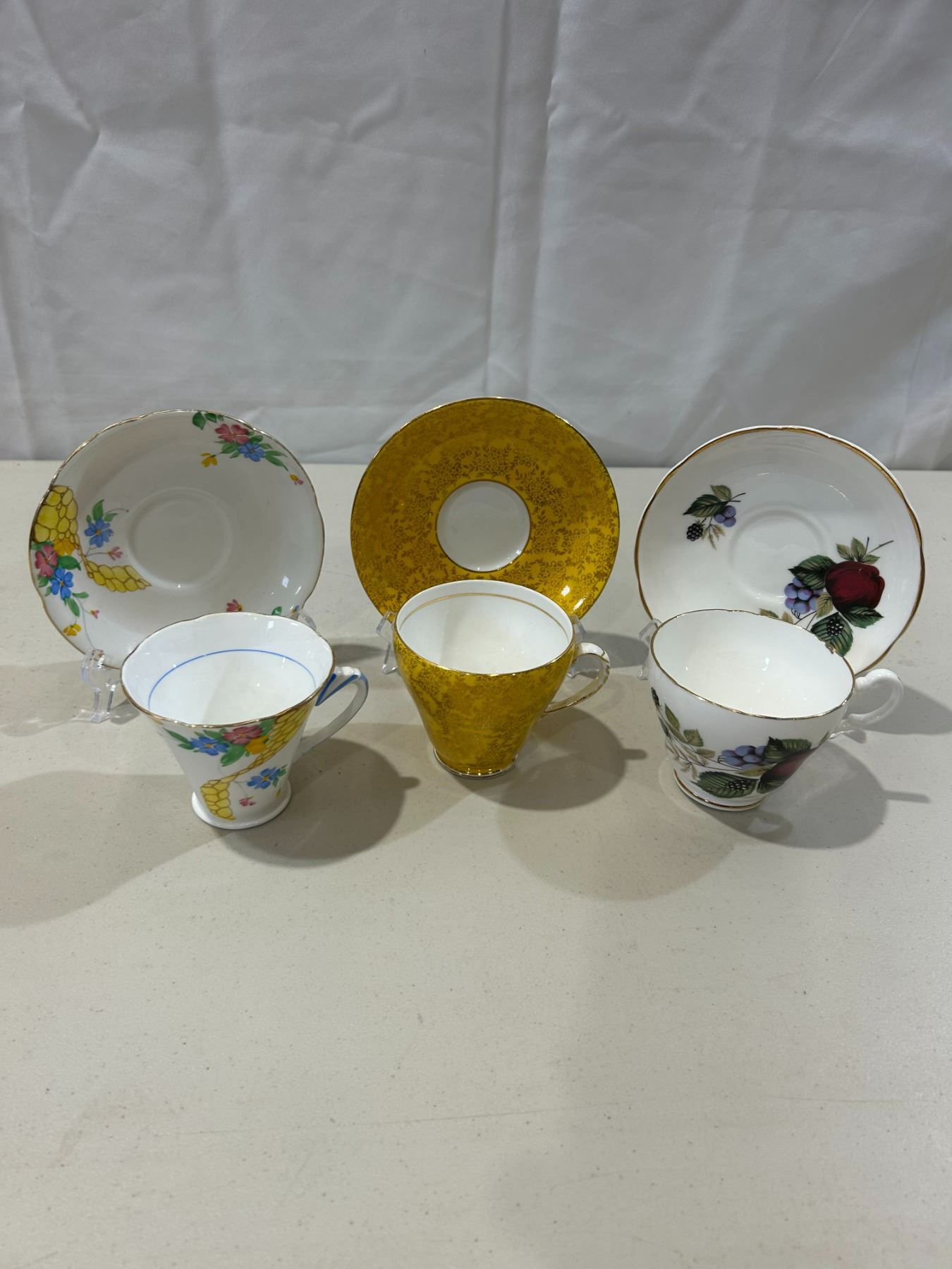 2 Vintage Crafton & 1 Vintage Sandford teacups and saucers