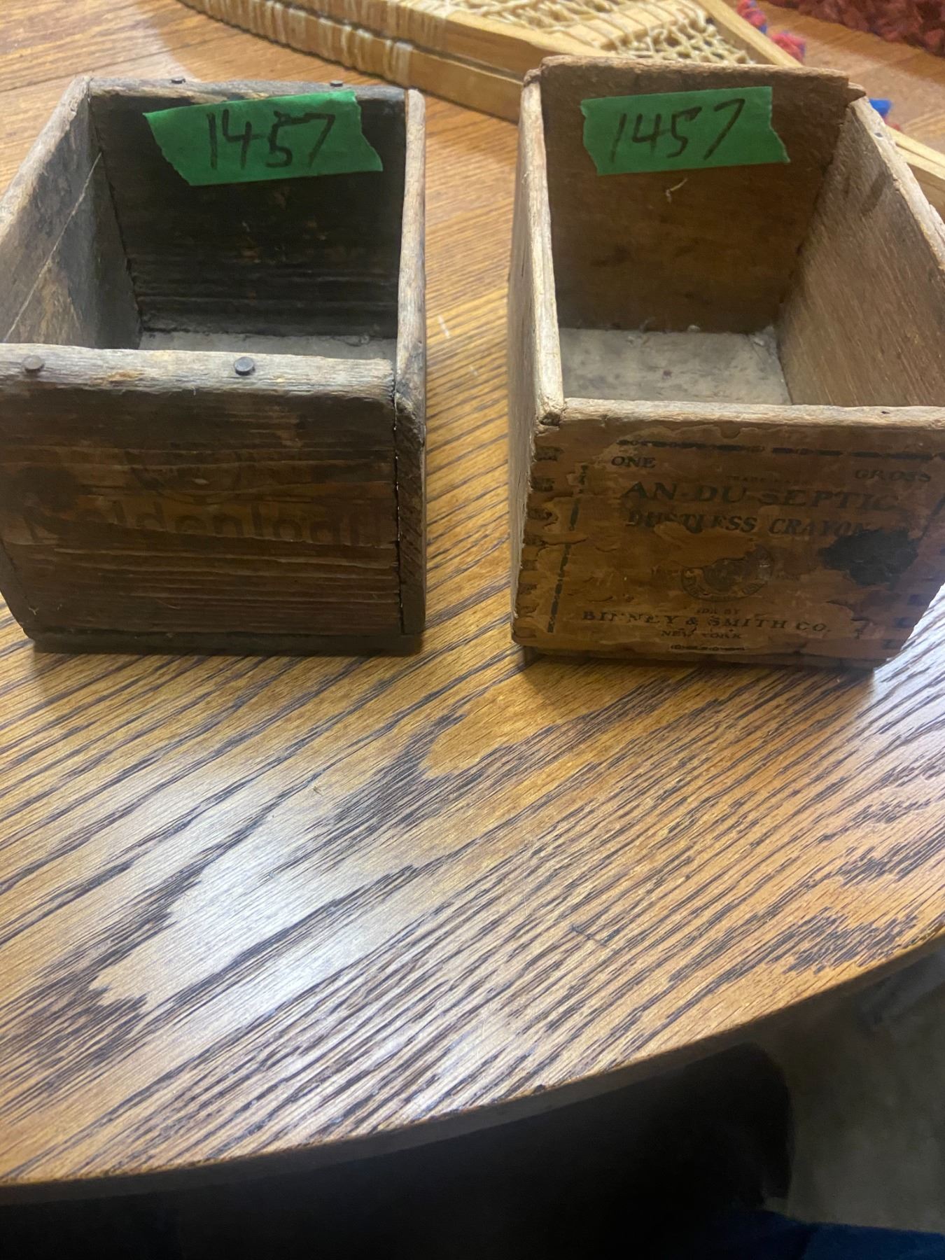 2 Vintage Dove-tailed Boxes - Crayon and Golden