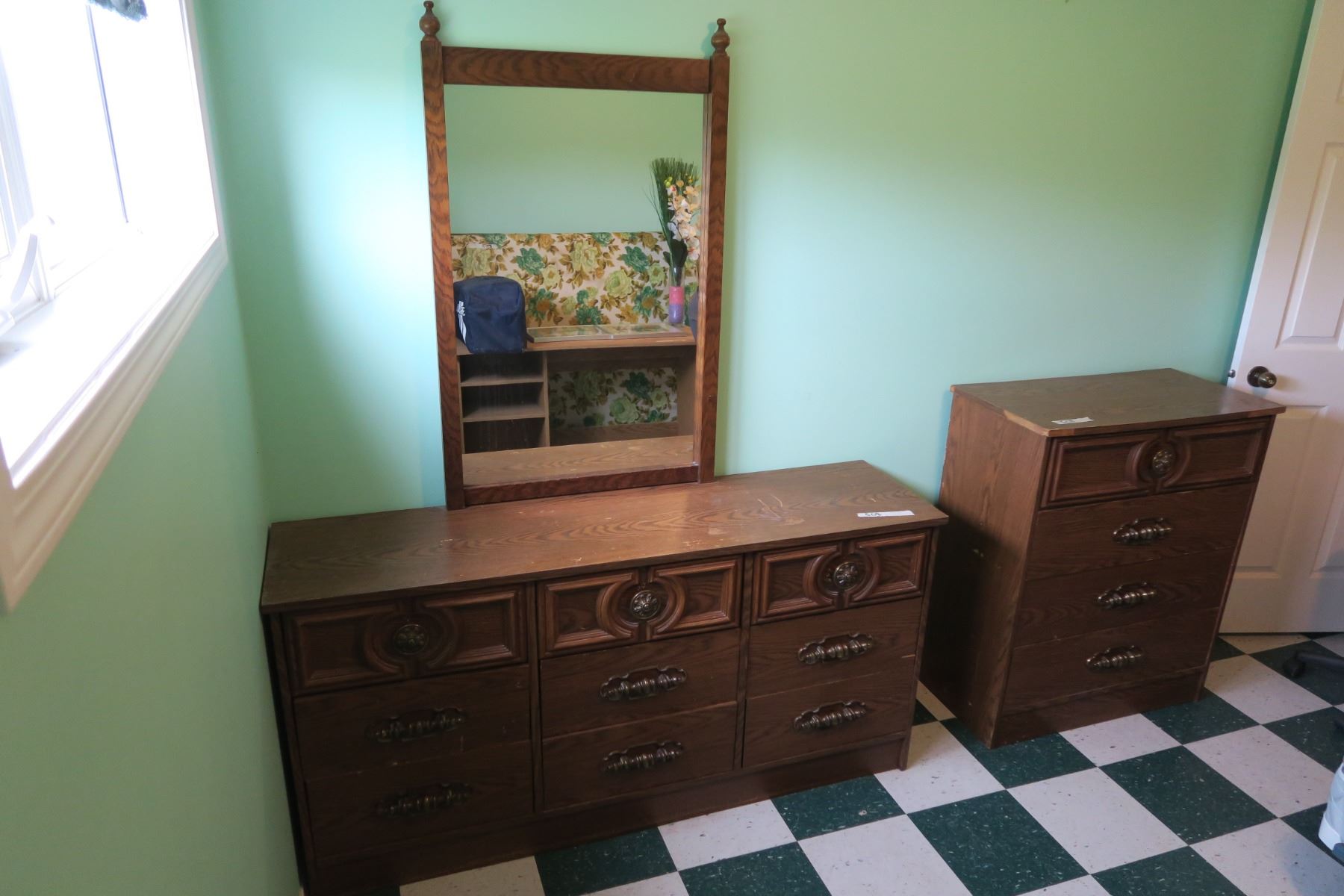 2 Vintage Dressers + Mirror 60"×16"×30" & 32"×16"×38"