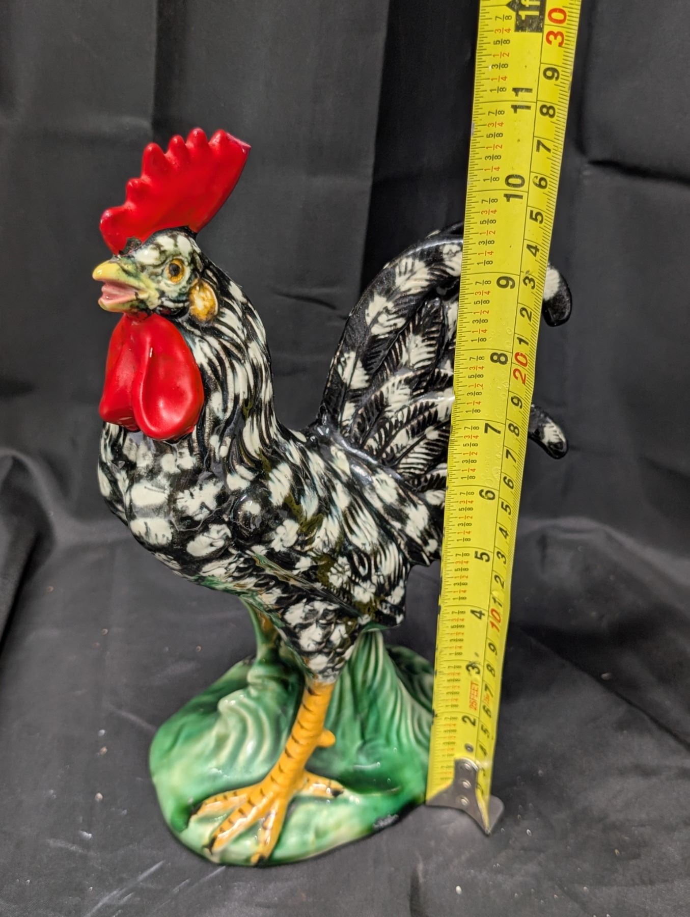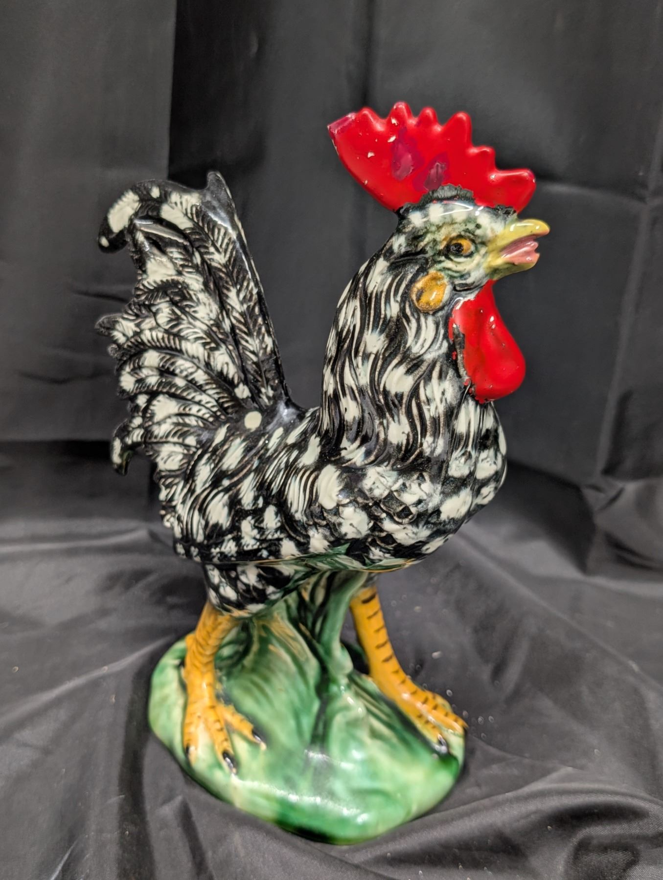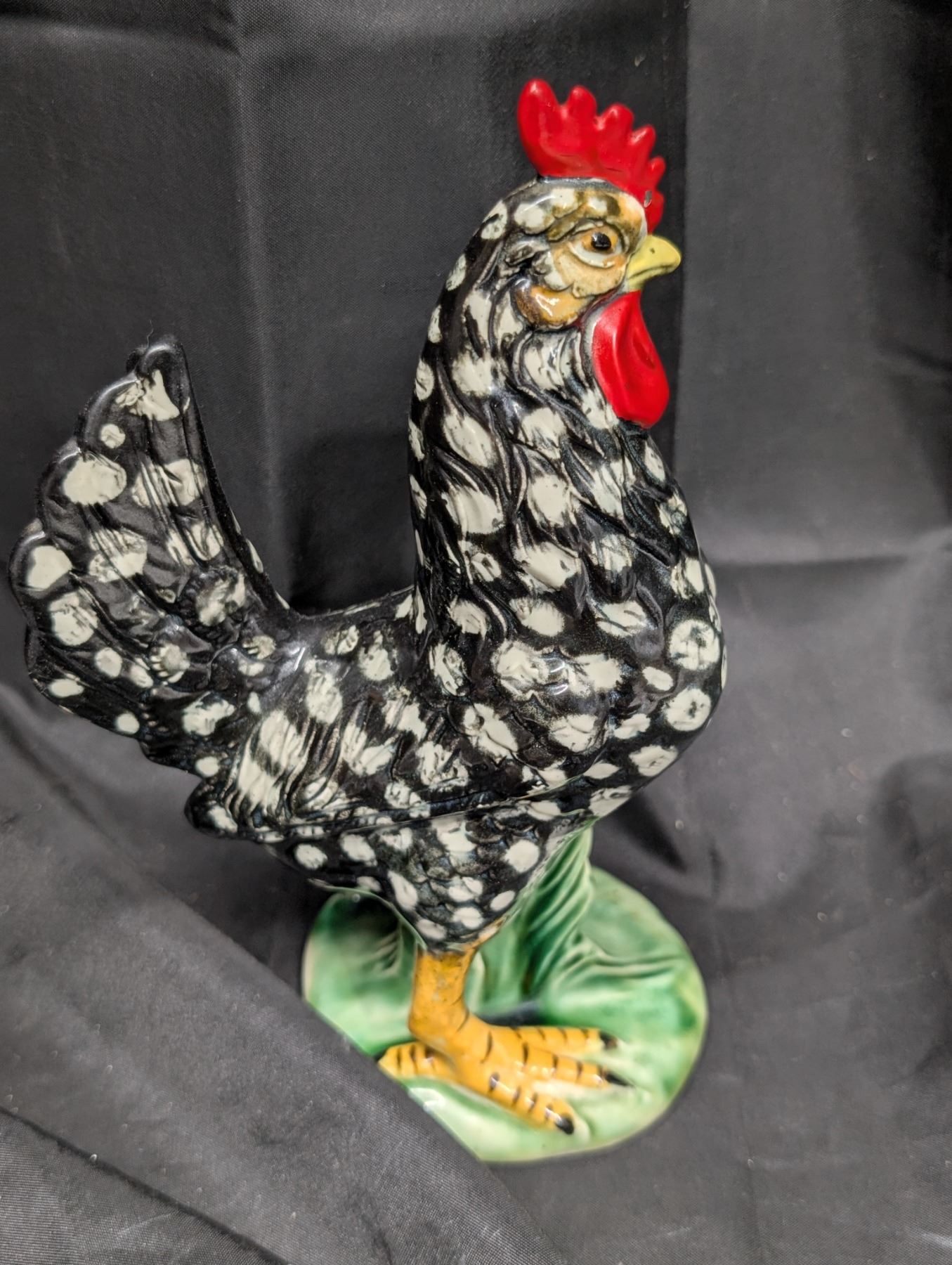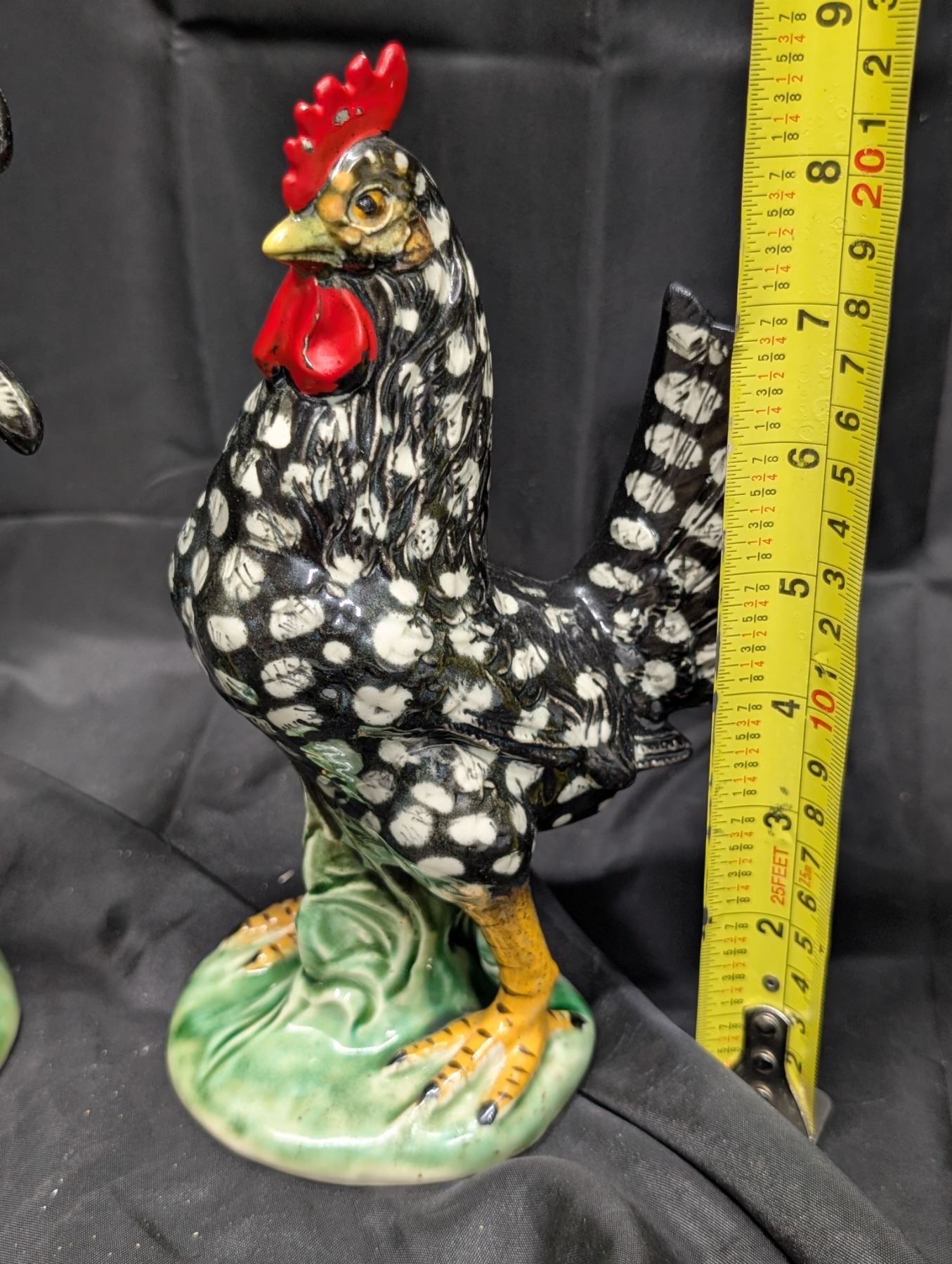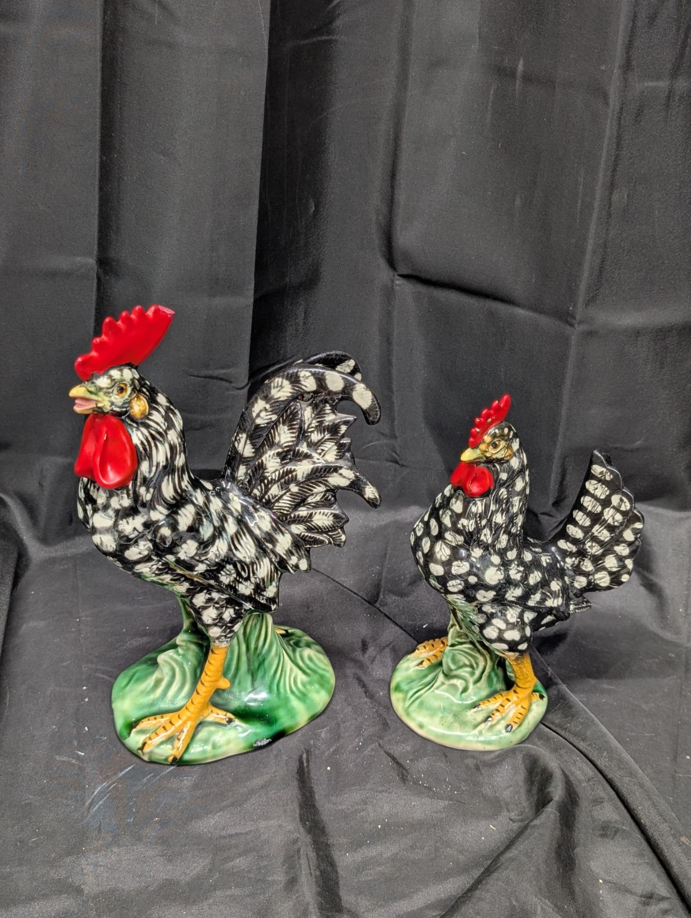 (2) Vintage Glass Hen and Rooster Black and White Figurines