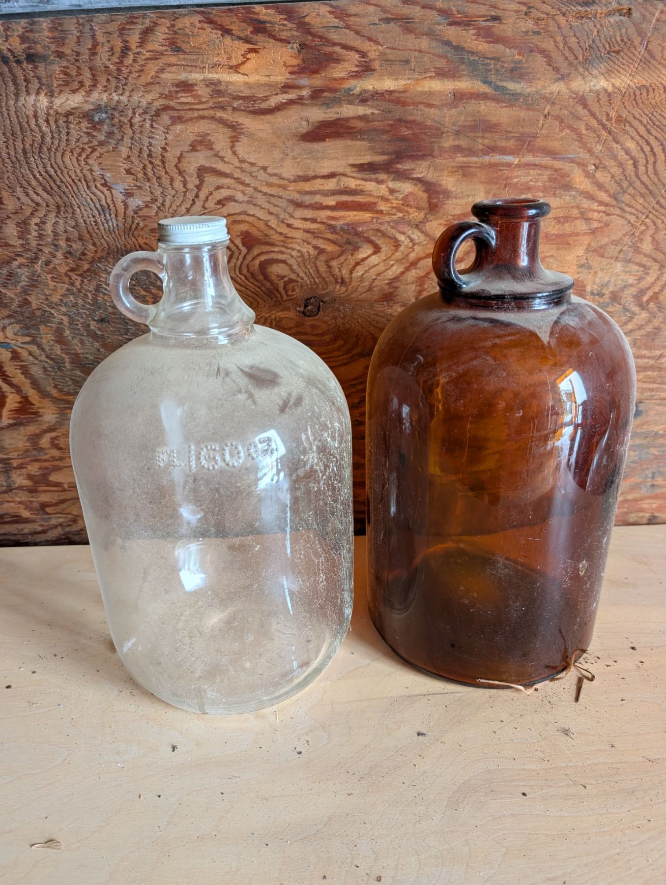 (2) Vintage Glass Jugs (1) Made in Canada Both Marked "D"