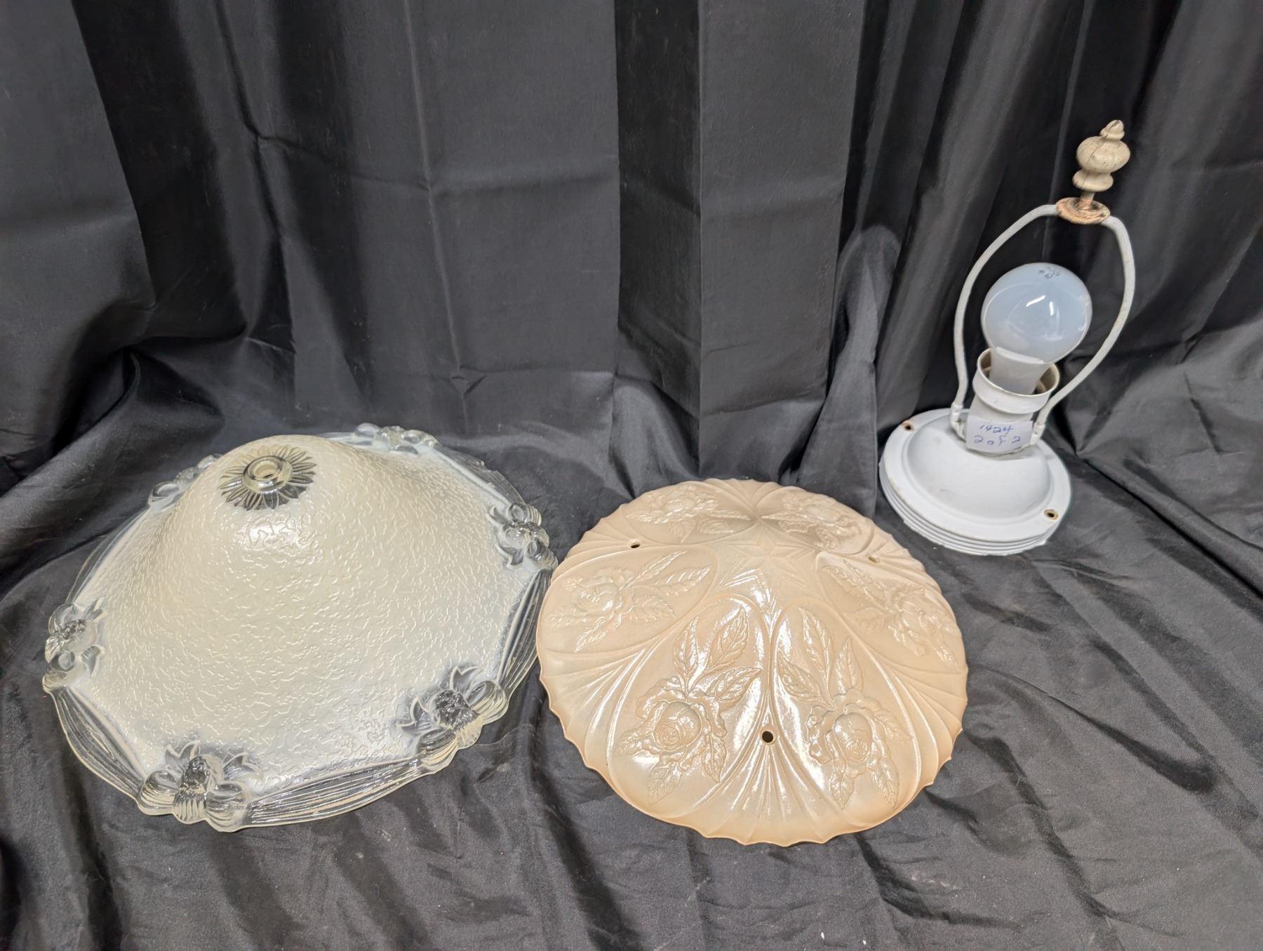 (2) Vintage Lamp Shades (Floral Design) and Vintage Bulb Lamp Base